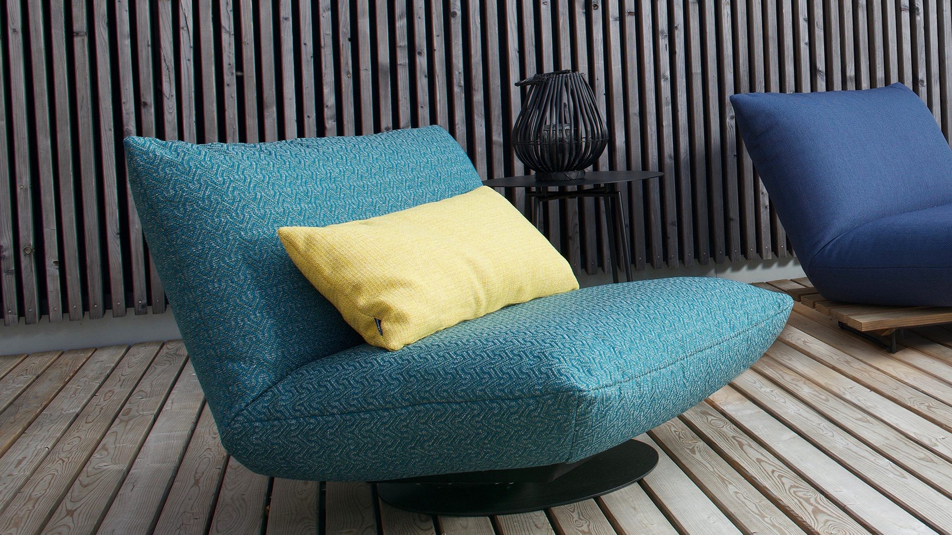 EXTRAVAGANTNÍ DESIGN, MAXIMÁLNÍ POHODLÍ, ČISTÁ RELAXACE! VNITŘNÍ NEBO VENKOVNÍ KŘESLO S FUNKCÍ OTÁČENÍ A HOUPÁNÍ. ŠIROKÉ KŘESLO S POLŠTÁŘOVÝM VZHLEDEM NA KULATÉ ZÁKLADOVÉ DESCE Z OCELI V ČERNÉM MATNÉM LAKU. VYBERTE SI Z VELKÉHO VÝBĚRU LÁTEK. UNIKÁTNÍ KUSOVÁ VÝROBA.