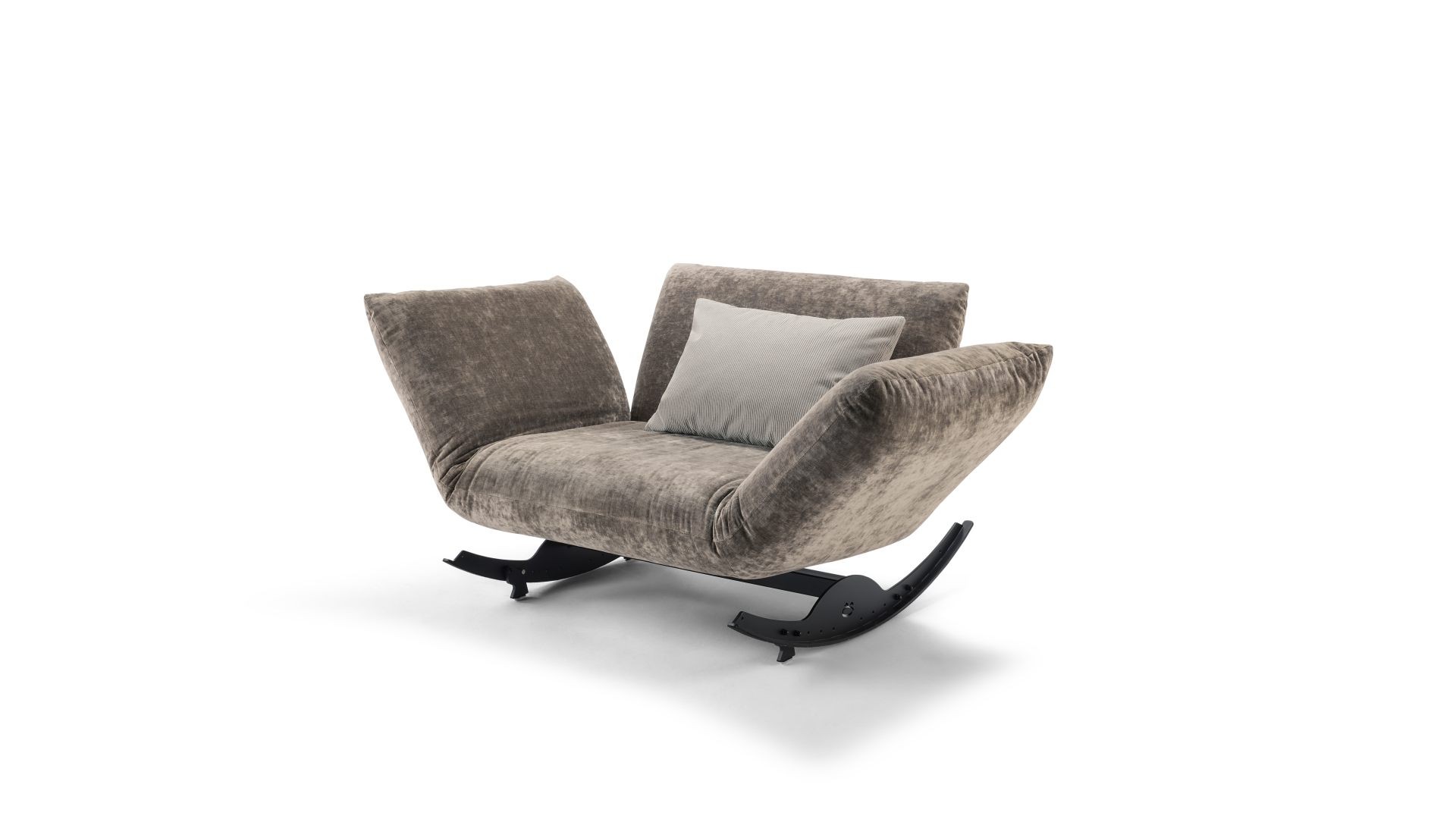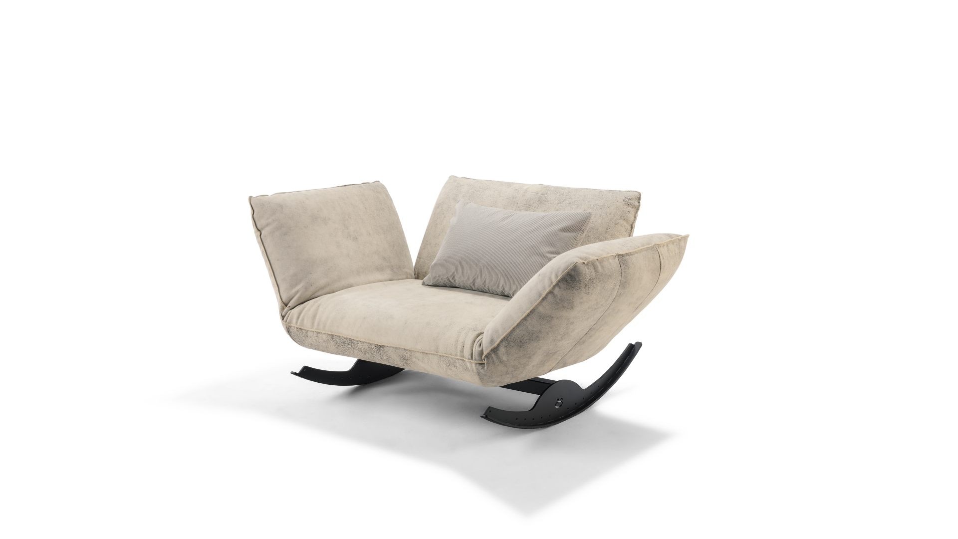 ŠTĚSTÍ. NAŠE NEJMILEJŠÍ, SPECIÁLNÍ KŘESLO S FAKTOREM ZÁBAVY. POSAĎTE SE, POHUPUJTE SE, LEHNĚTE SI A UŽÍVEJTE SI JEMNÉ HOUPÁNÍ! NASTAVITELNÉ PODRUČKY A OPĚRNÝ POLŠTÁŘ UMOŽŇUJÍ INDIVIDUÁLNÍ POUŽITÍ. HOUPÁNÍ MŮŽETE TAKÉ „VYPNOUT“ DÍKY ARETAČNÍM NOŽIČKÁM NĚKOLIKA MÁLO POHYBY RUKY A MÍT KŘESLO V KLIDOVÉ POLOZE. UNIKÁTNÍ KUSOVÁ VÝROBA.