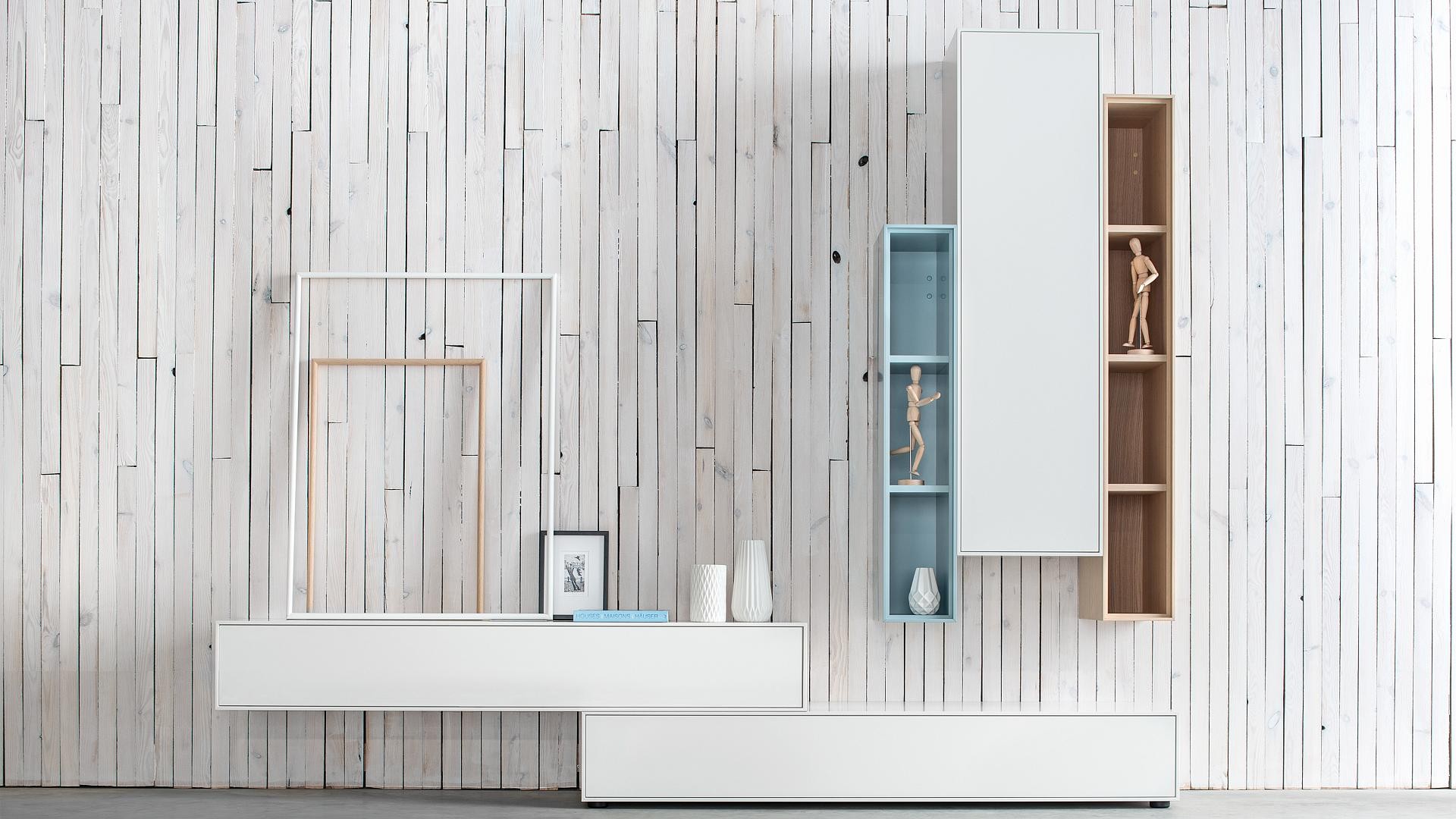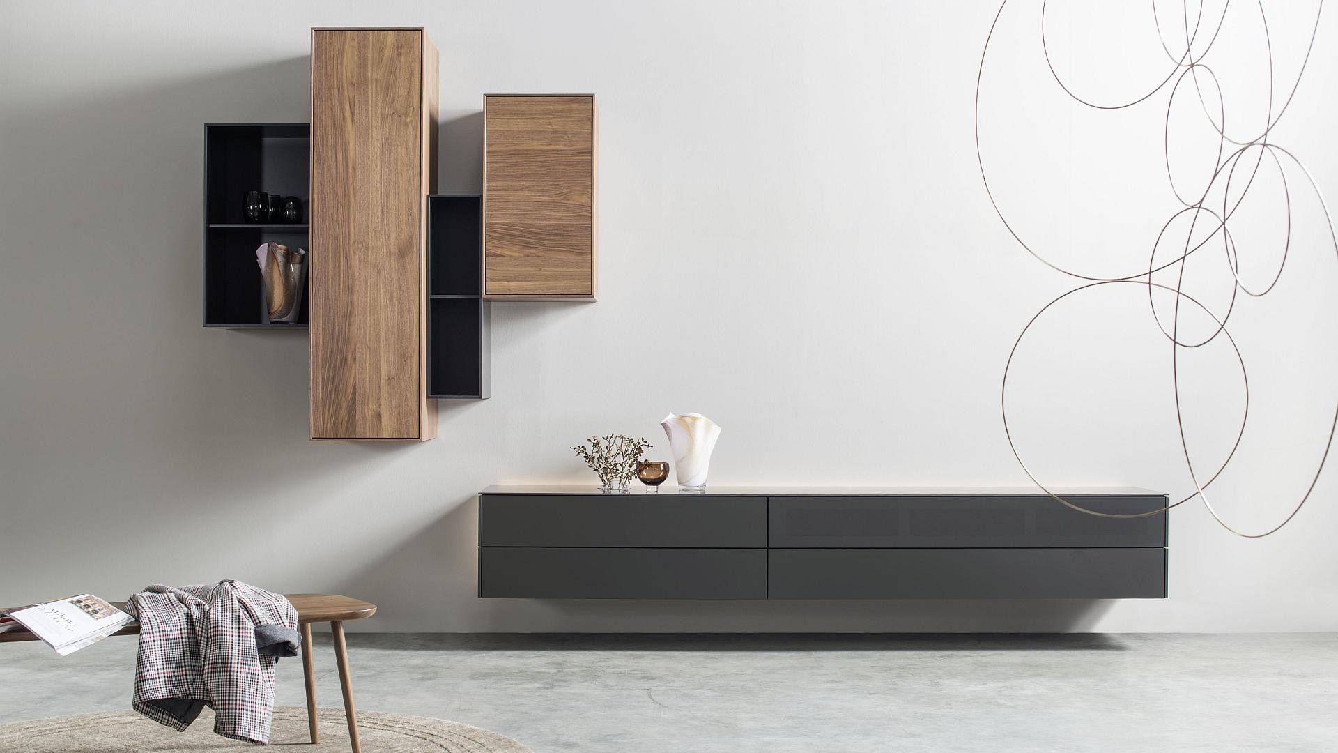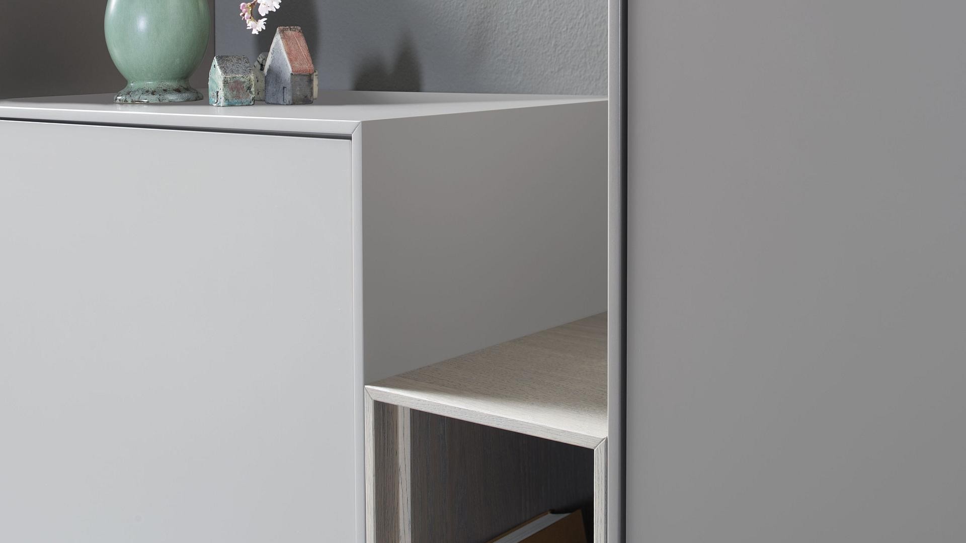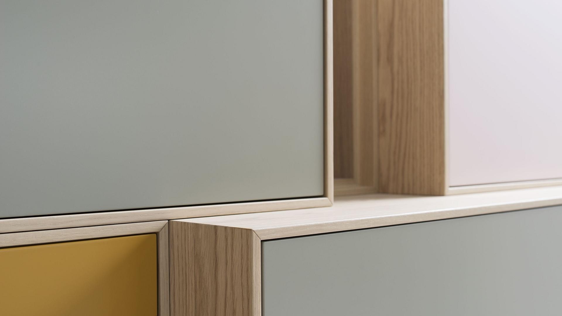 Řada GAME oslovuje svým filigránským vzhledem. Jemně falcovaná, zkosená hrana korpusu dodává nábytku obzvlášť lehký vzhled. Protože jsou všechna dvířka, výklopy a zásuvky v přední části zarovnané, štíhlé obrysy jsou také nejlépe vidět, když jsou prvky uzavřené. Je také možné hrát s barvami laků a variantami dřeva. Všechna bezúchytková čela se snadno otevírají dotykem prstu (otevření push-to-open). Moduly lze postavit přímo na podlahu, osadit nožkami nebo zavěsit na zeď.