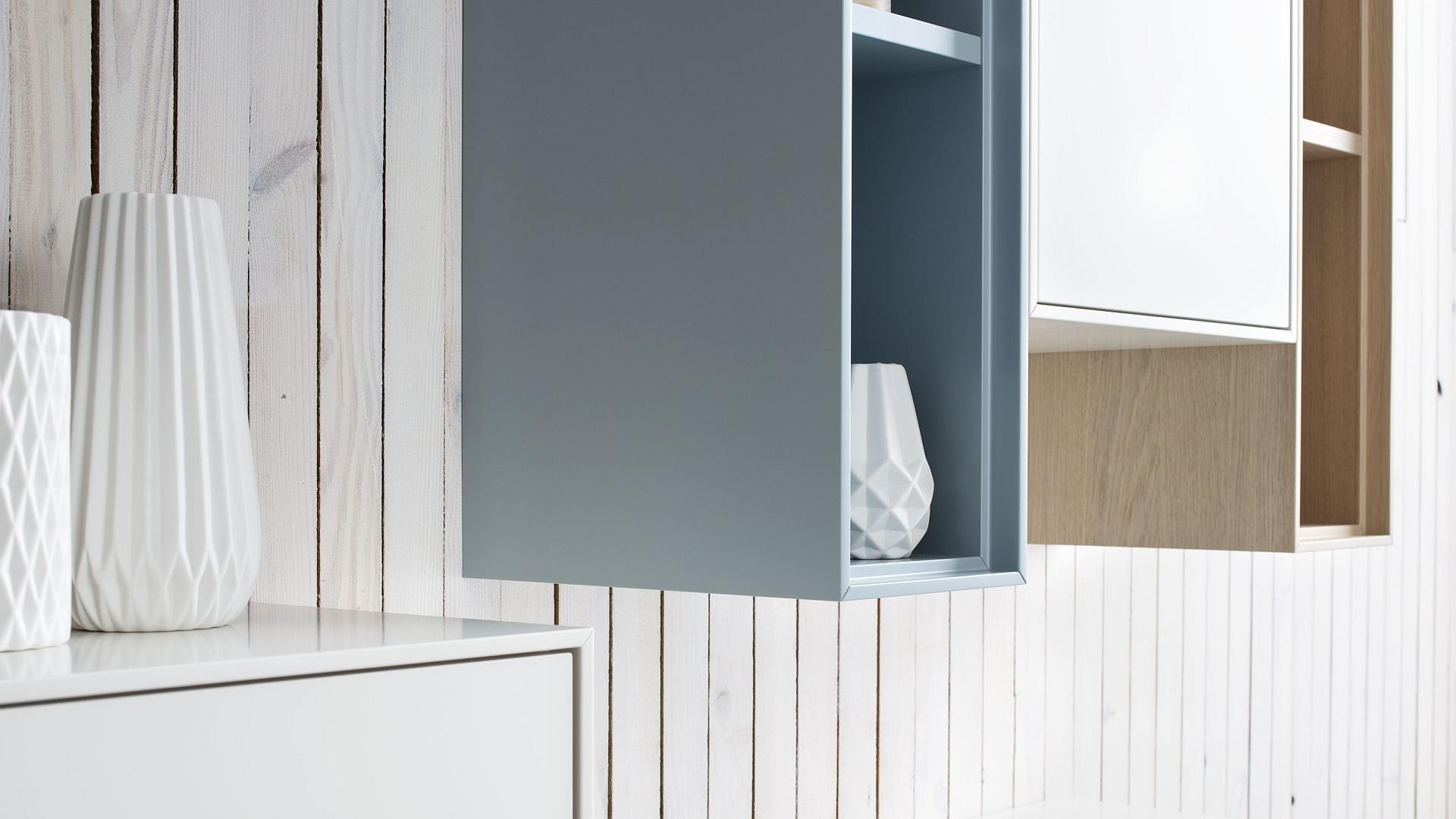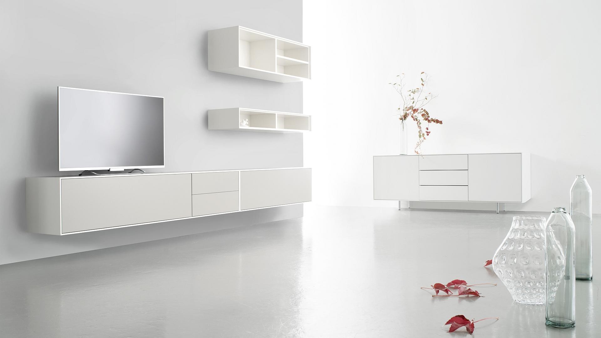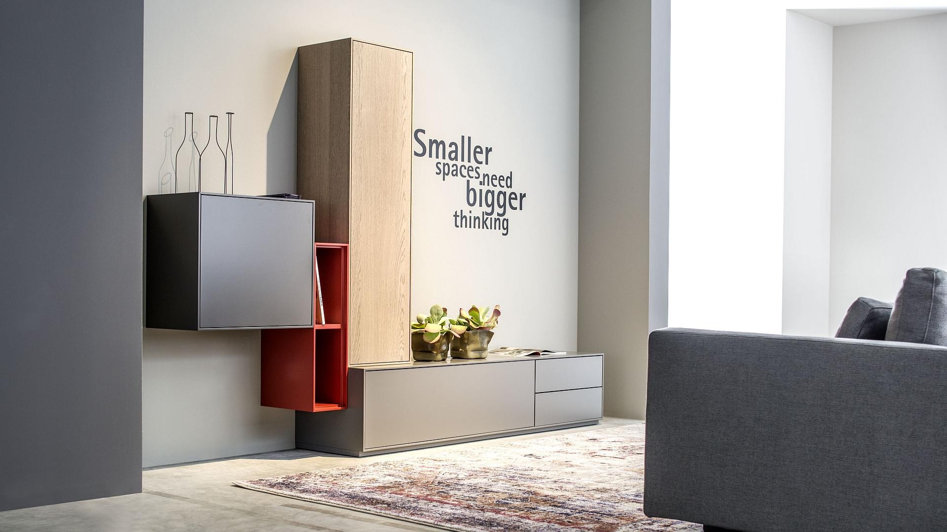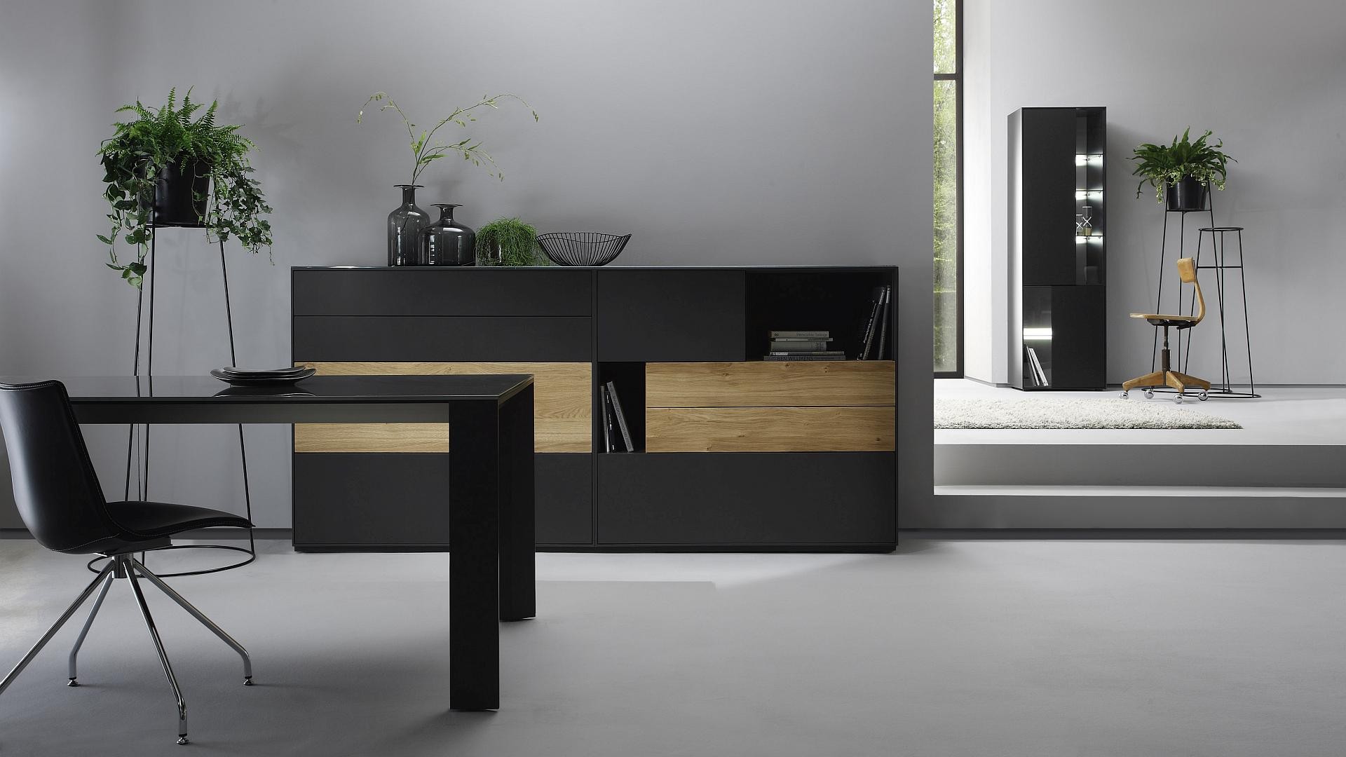Řada GAME oslovuje svým filigránským vzhledem. Jemně falcovaná, zkosená hrana korpusu dodává nábytku obzvlášť lehký vzhled. Protože jsou všechna dvířka, výklopy a zásuvky v přední části zarovnané, štíhlé obrysy jsou také nejlépe vidět, když jsou prvky uzavřené. Je také možné hrát s barvami laků a variantami dřeva. Všechna bezúchytková čela se snadno otevírají dotykem prstu (otevření push-to-open). Moduly lze postavit přímo na podlahu, osadit nožkami nebo zavěsit na zeď.