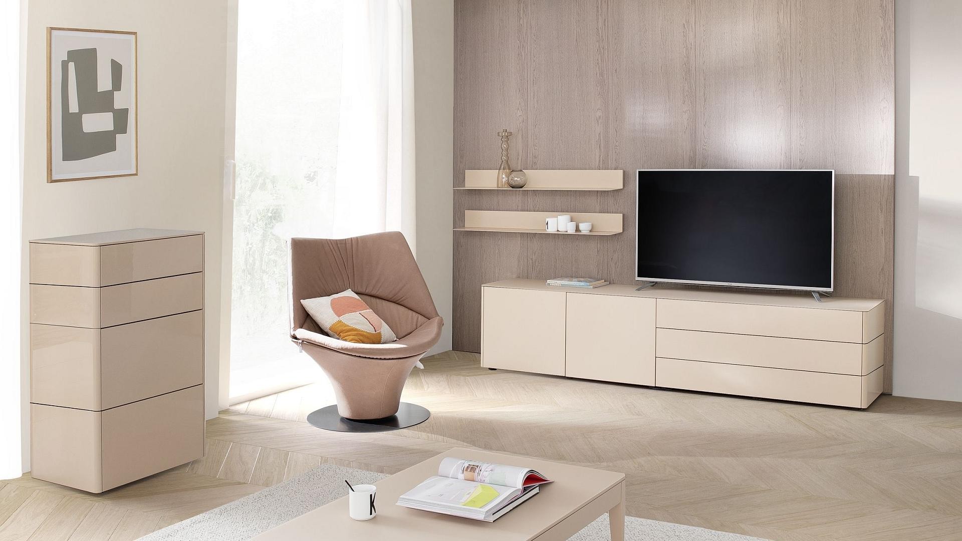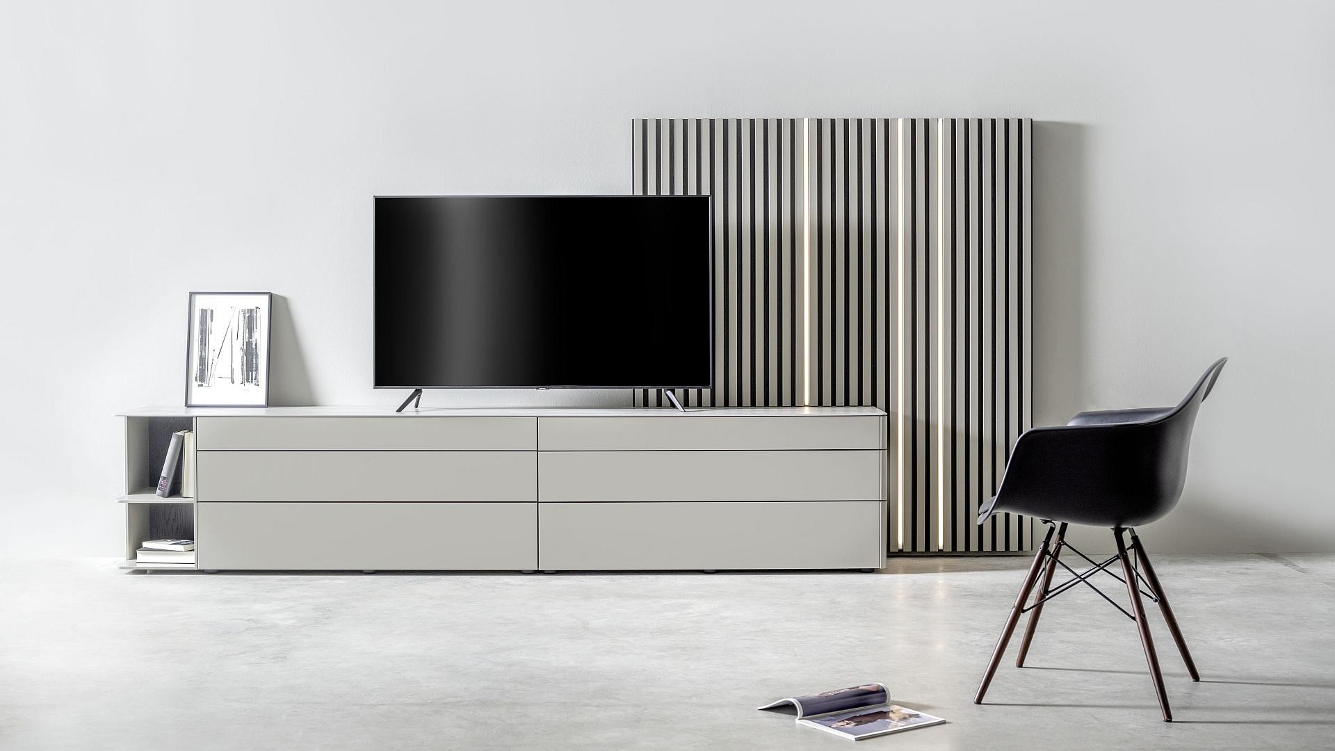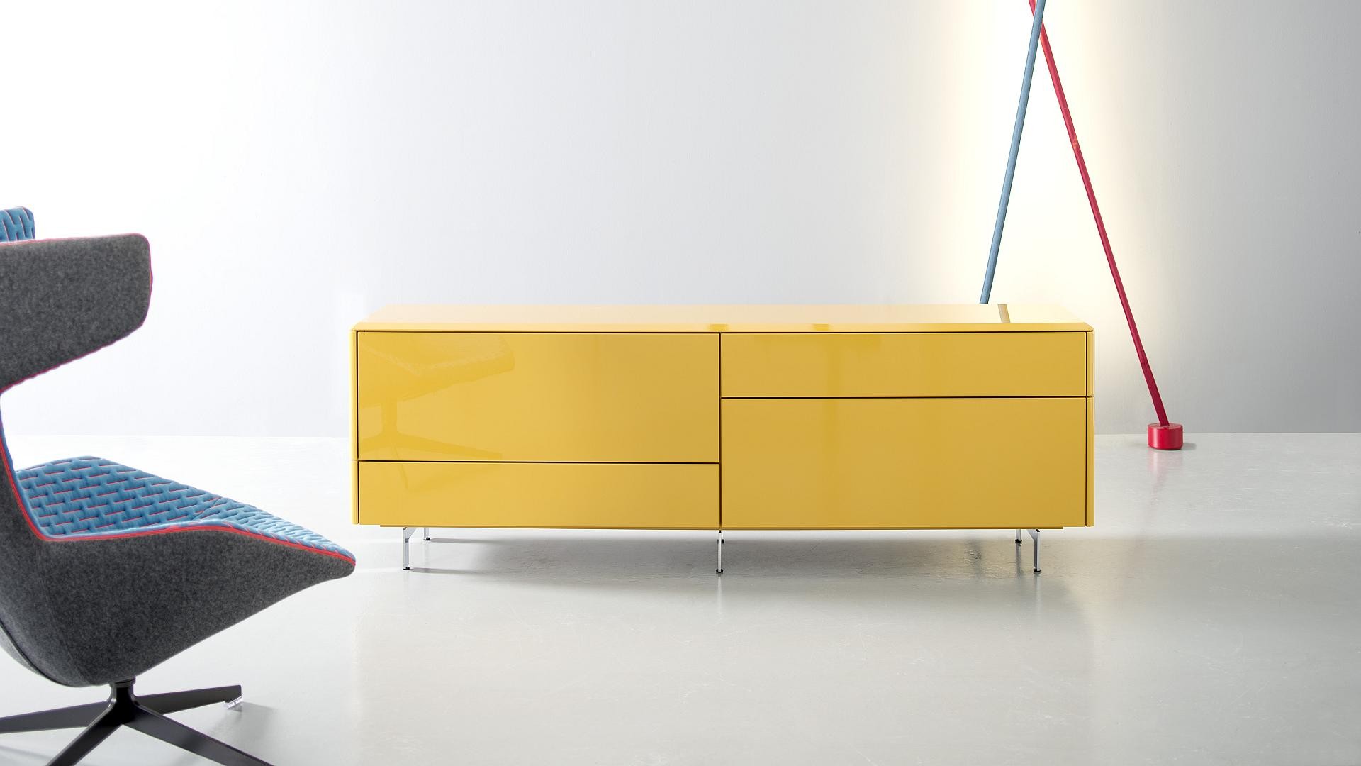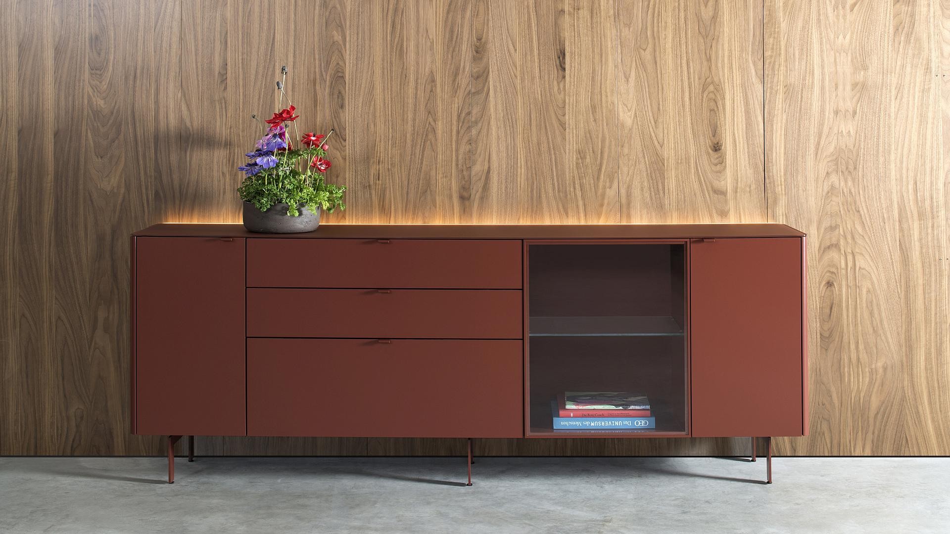 Modelová řada GOYA je založena na kontrastech: smyslné oblé tvary na bočních panelech v kontrastu s jemnými, jasnými liniemi na přední části prvků a na filigránové horní krycí desce. Vzrušující je také materiálový mix skla, laku a elegantní přírodní dýhy. Program představuje kompaktní, pevné kusy nábytku, které nejlépe fungují jako volně stojící předměty v místnosti. Skříně, vitríny, příborníky a zásuvkové jednotky pro jakýkoli prostor.