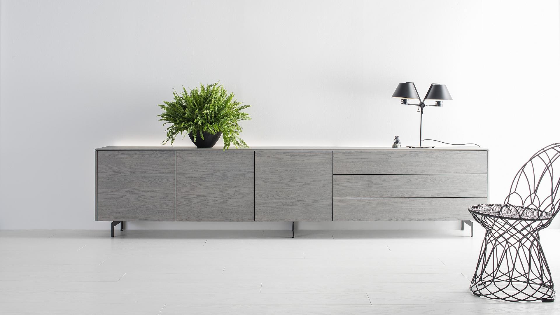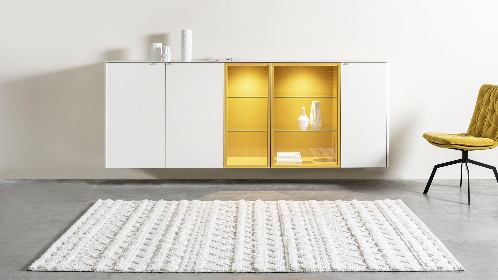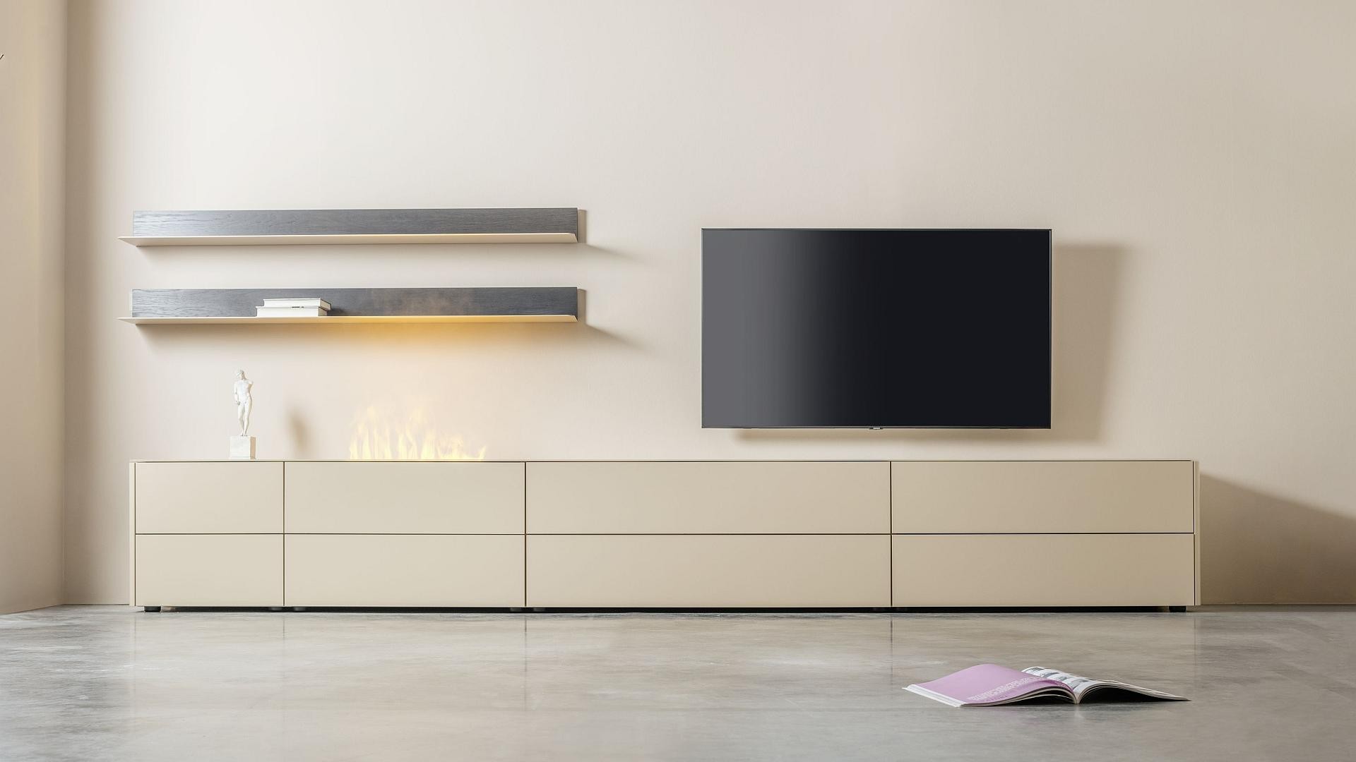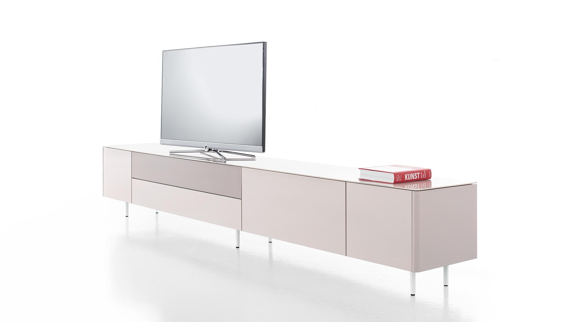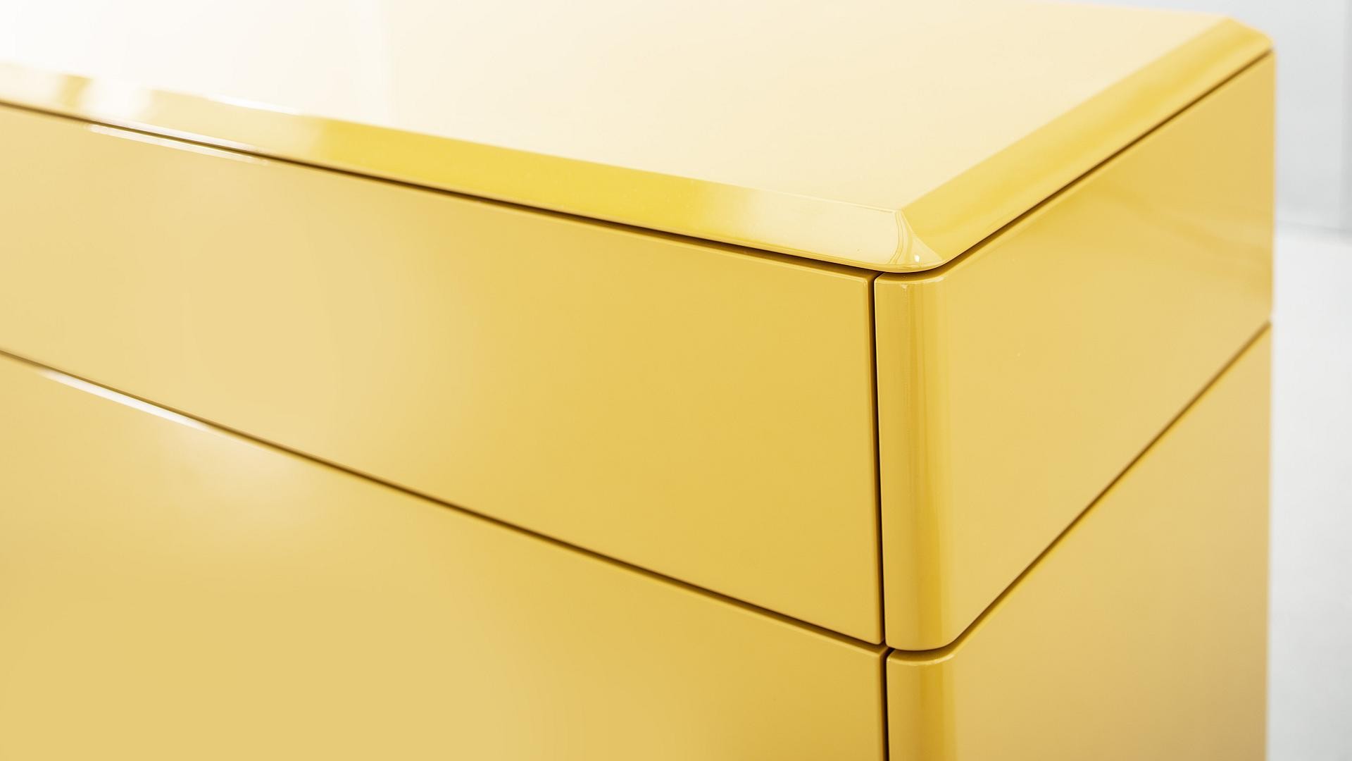 Modelová řada GOYA je založena na kontrastech: smyslné oblé tvary na bočních panelech v kontrastu s jemnými, jasnými liniemi na přední části prvků a na filigránové horní krycí desce. Vzrušující je také materiálový mix skla, laku a elegantní přírodní dýhy. Program představuje kompaktní, pevné kusy nábytku, které nejlépe fungují jako volně stojící předměty v místnosti. Skříně, vitríny, příborníky a zásuvkové jednotky pro jakýkoli prostor.