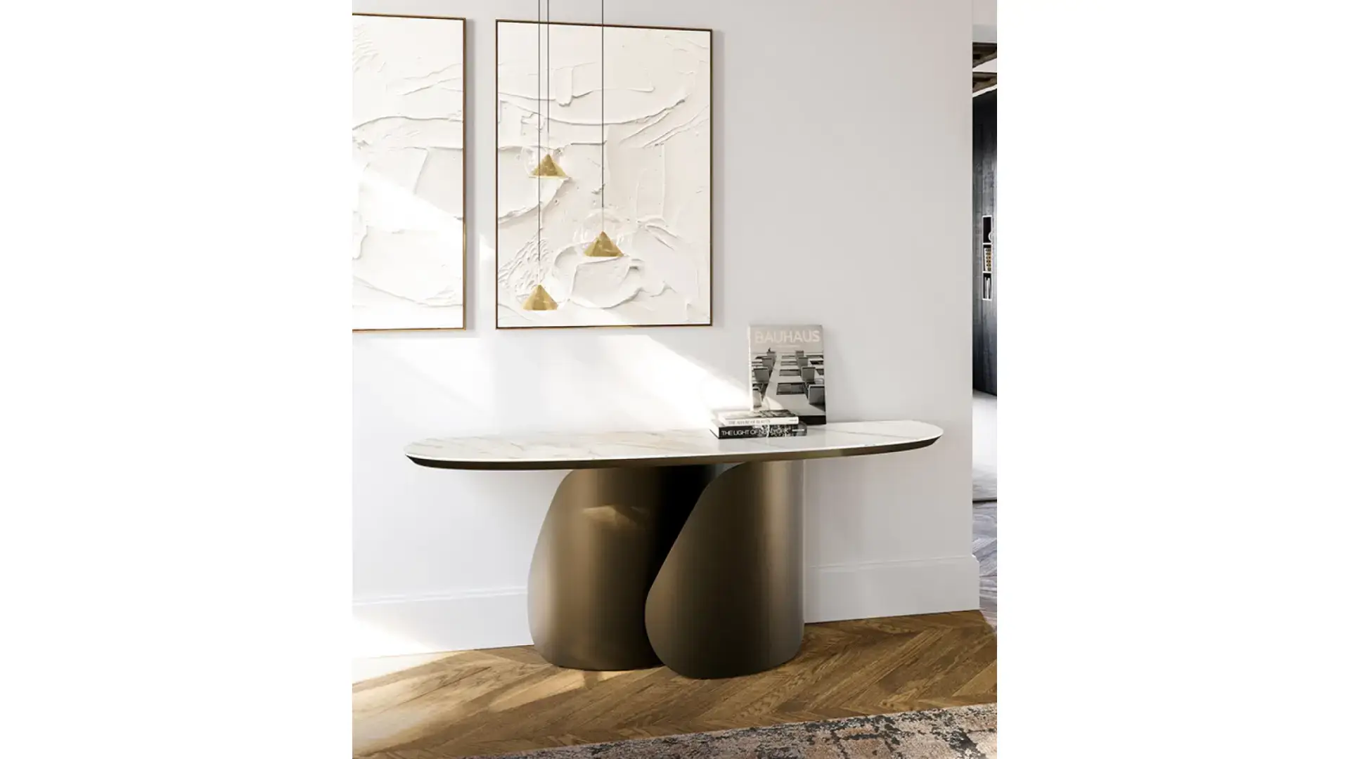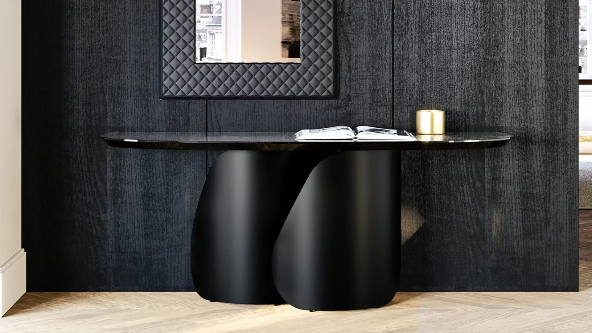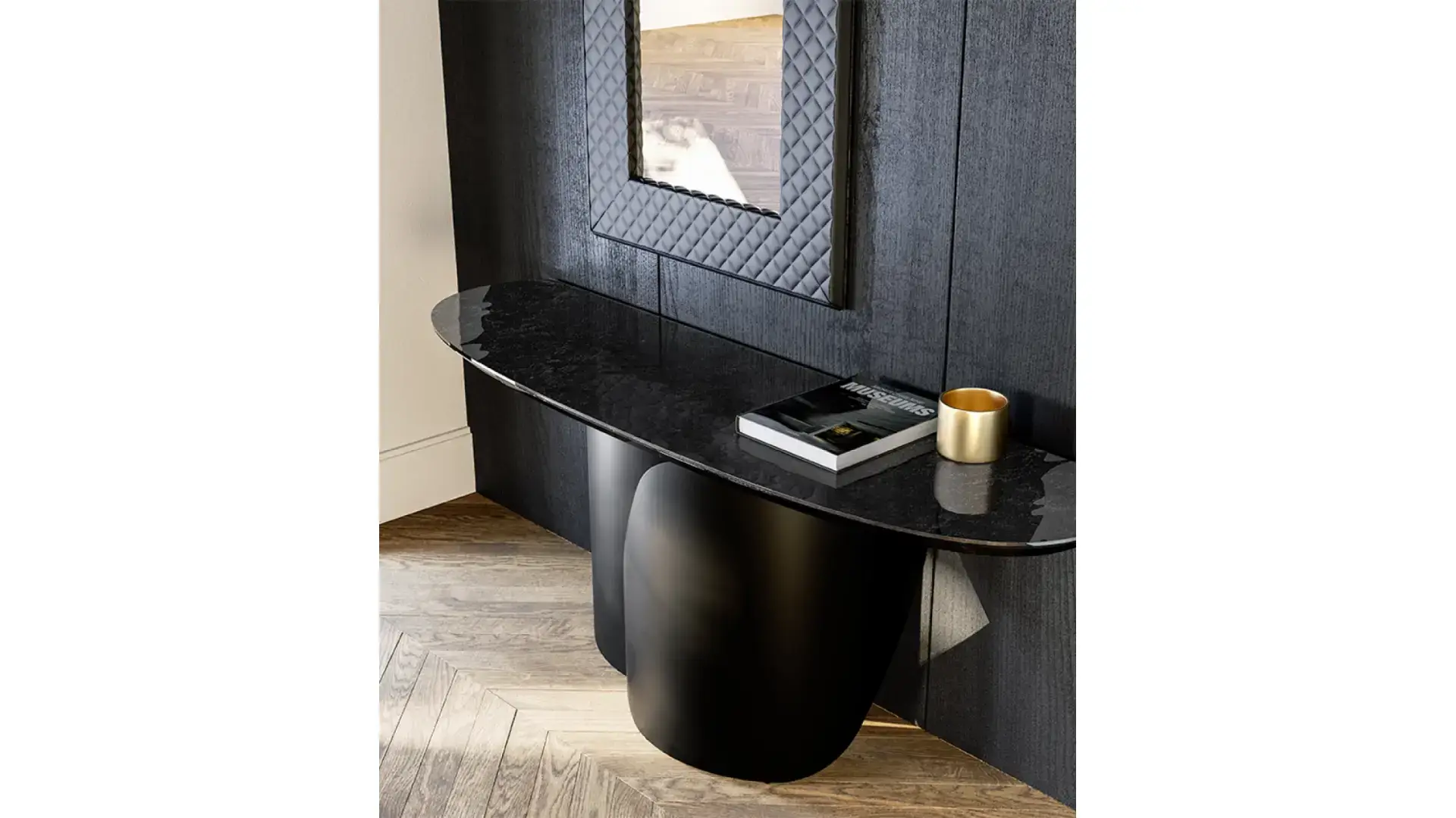 Konzolový stolek Onda je moderní designový prvek s velkým objemem, ideální pro stylové vybavení vstupního prostoru. Nabízí velkou lakovanou kovovou základnu a tvarovanou horní desku. Tento onzolový stolek s jedinečným moderním stylem je dostupný v různých velikostech, kromě skleněného provedení také v keramice nebo mramoru dle preferencí interiéru.