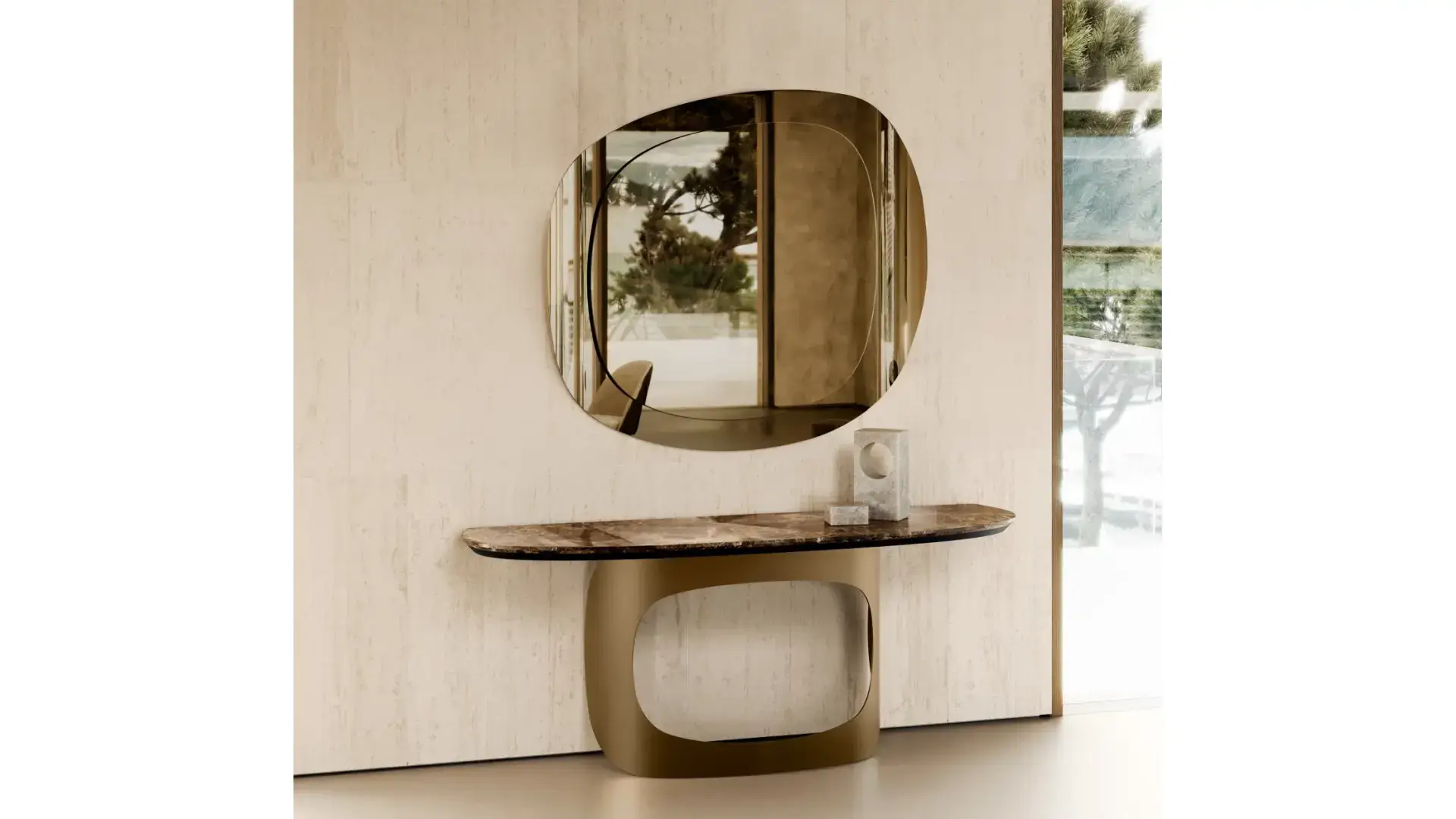 Konzolový stolek Polifemo je designový kousek, který vás přivítá hned při příchodu domů nebo stylově doplní vstupní prostory. Tento jedinečný kus nábytku dodá interiéru eleganci a nezaměnitelný styl. Kolekci Polifemo, kterou navrhl Andrea Lucatello a která zahrnuje také stůl, knihovnu a konferenční stolek, nyní obohacuje i konzolový stolek se svým charakteristickým prvkem ve tvaru velkého oka. Díky použití materiálů nejvyšší kvality vzniká nadčasový, sochařsky působící objekt, který se stane dominantou každého prostoru. Tvarovaná horní deska je k dispozici v různých velikostech, kromě skla také v keramickém nebo mramorovém provedení podle vašich preferencí. Její sochařský tvar a schopnost upoutat pozornost z ní dělají středobod místnosti, zatímco její plocha nabízí dostatek prostoru pro vystavení dekorací nebo odkládání klíčů a drobných předmětů.
