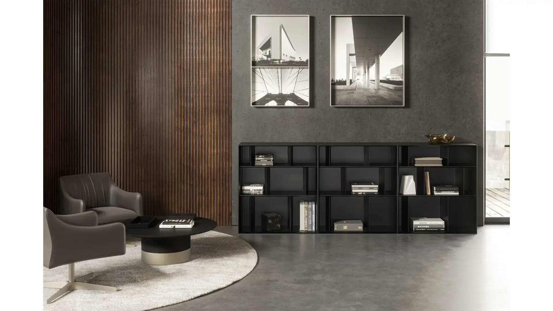 Bendy je modulární knihovna od společnosti Eforma, navržená tak, aby přinášela eleganci a praktičnost do obývacích pokojů i salonků, a to jak v rezidenčních, tak pracovních prostorech. Konstrukce a police jsou vyrobeny z matně lakovaného dřeva, doplněného lakovanými kovovými přepážkami, což vytváří sofistikovaný a moderní vzhled.