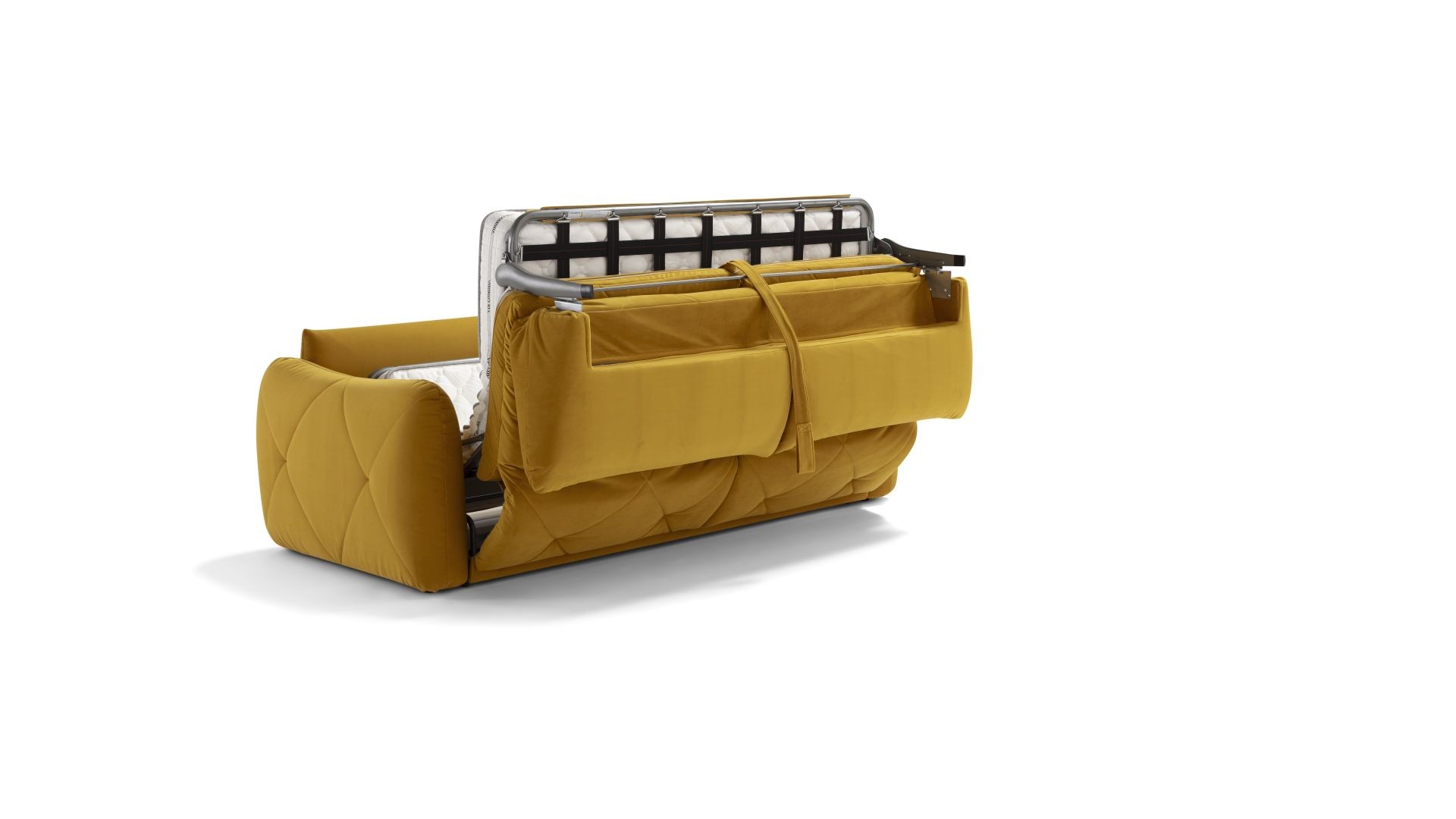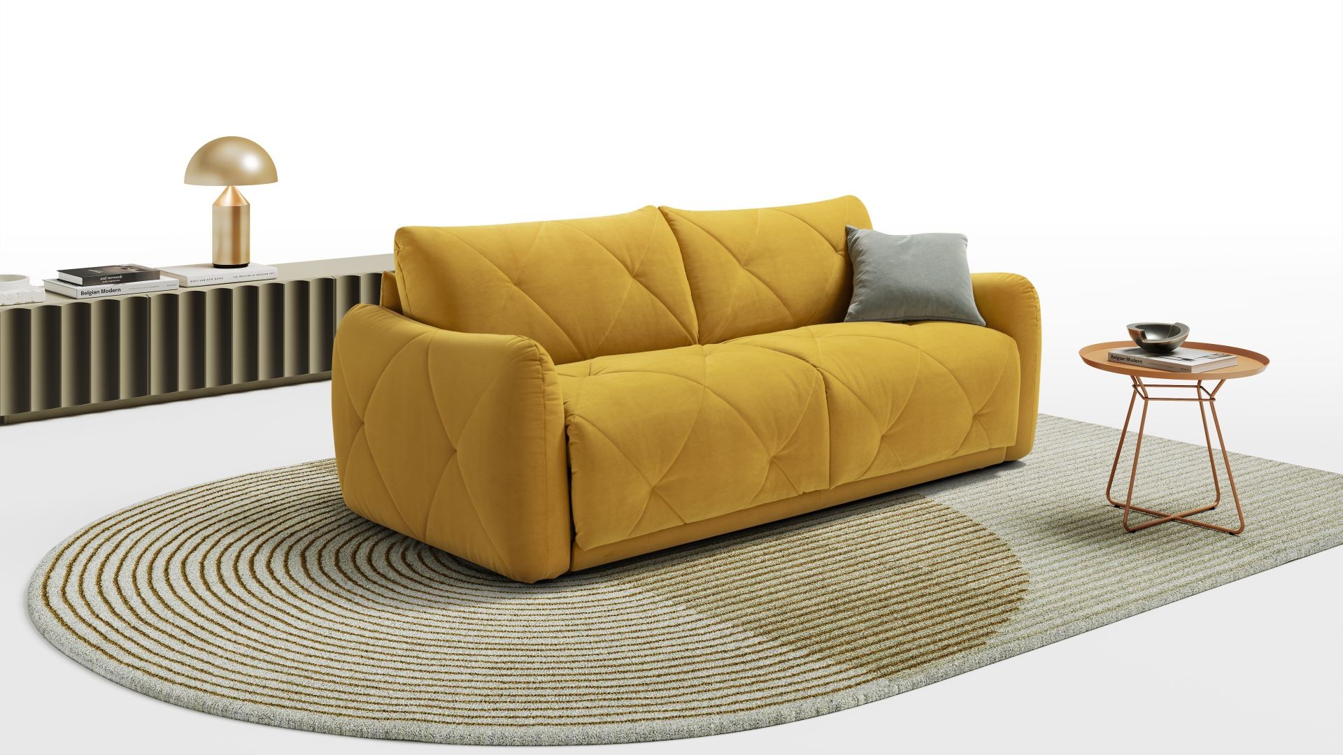 Rozkládací pohovka BLUM od italské značky VIS COMODA spojuje jemné linie, moderní design a praktickou funkčnost. Díky svému elegantnímu tvaru a výraznému hořčičně žlutému čalounění dodá každému interiéru šmrnc a osobitost. Tento model je navržen pro ty, kteří chtějí skloubit styl, komfort a praktičnost v jednom kuse nábytku. Snadným pohybem se pohovka promění v útulnou a pohodlnou postel, ideální pro každodenní spaní nebo příležitostné přespání hostů. Kvalitní čalounění a precizní italské zpracování zaručují dlouhou životnost a pohodlí při sezení i spánku. Pohovka BLUM je dokonalým doplňkem moderního obývacího pokoje, který ocení milovníci designu s charakterem.