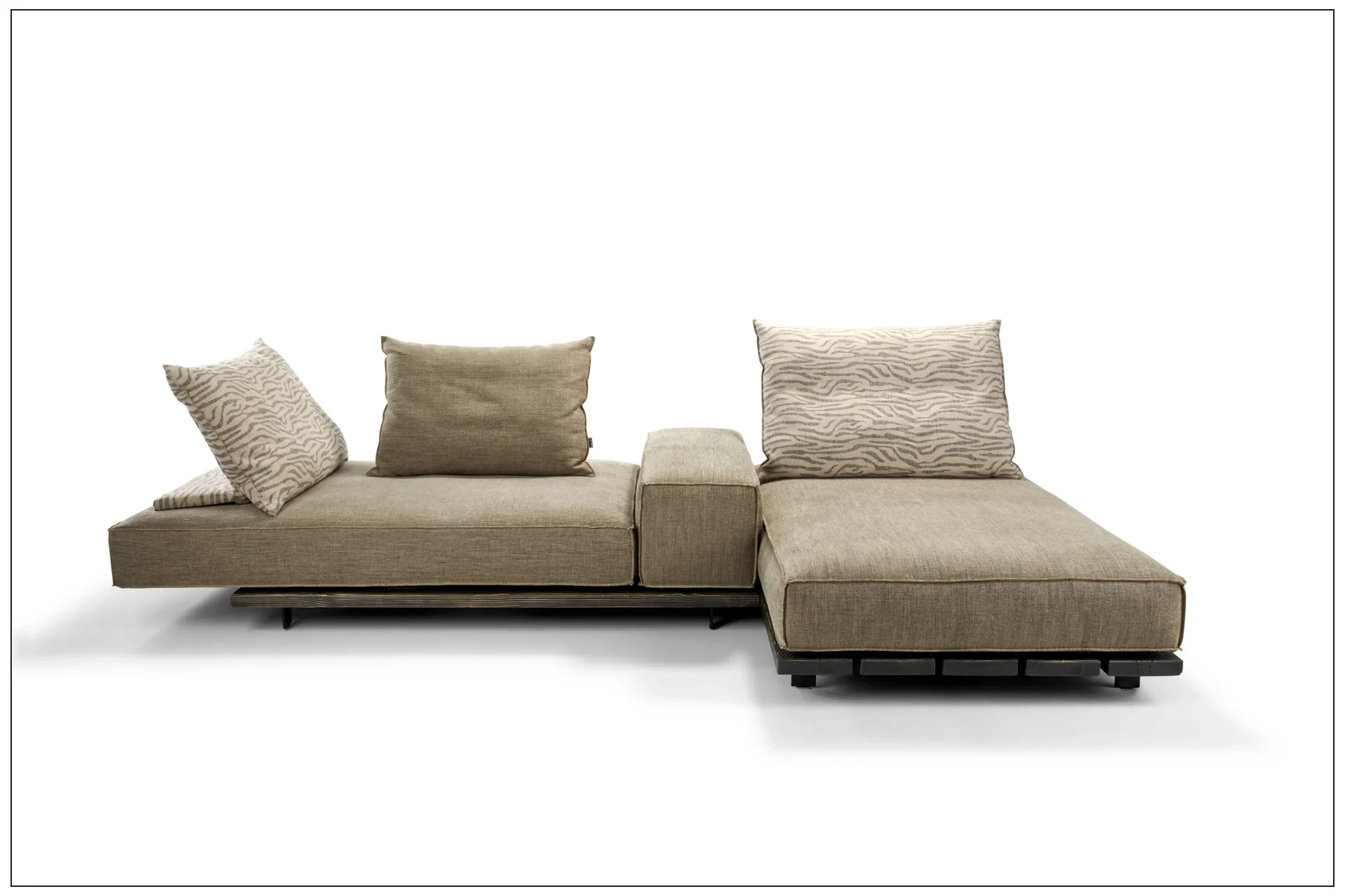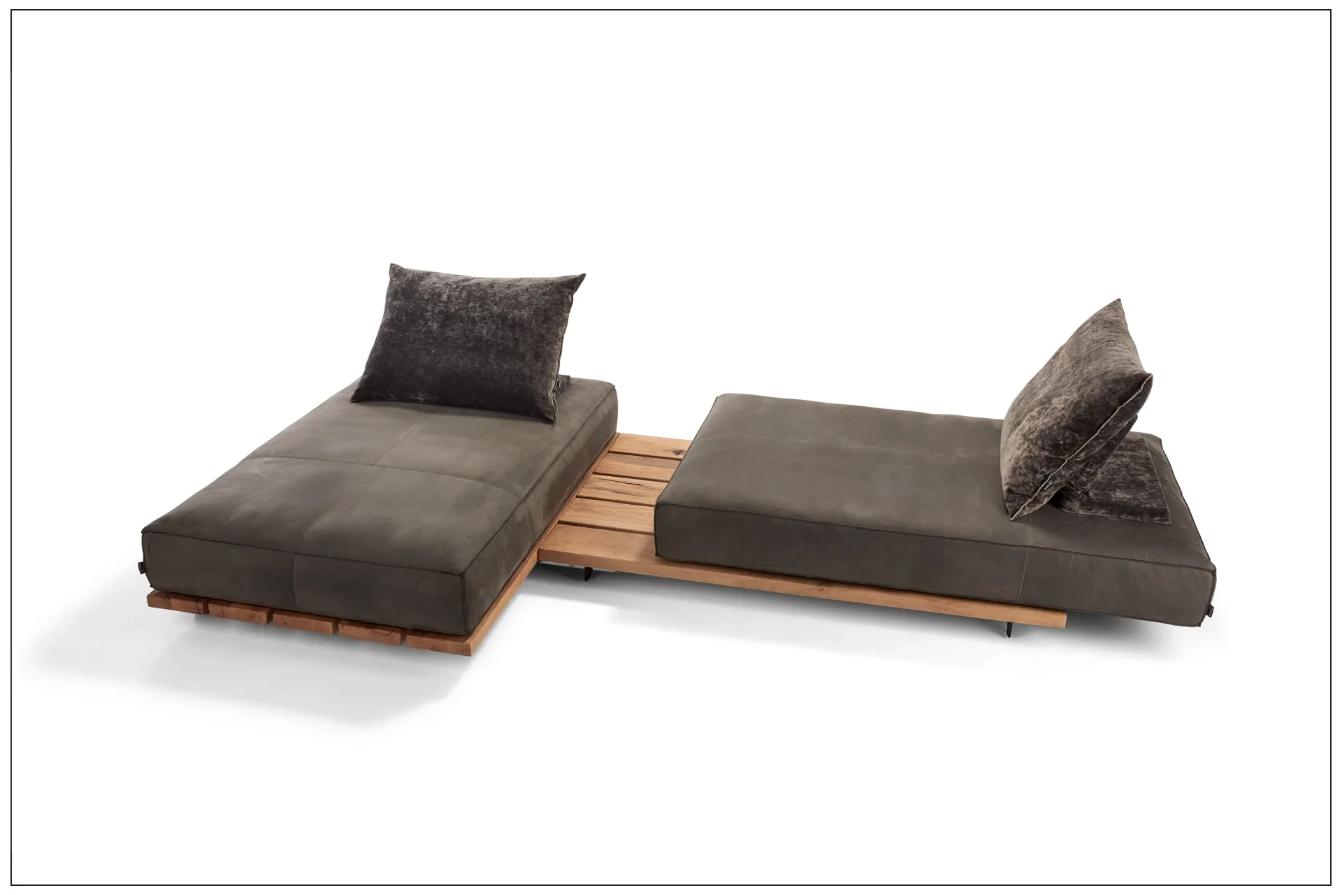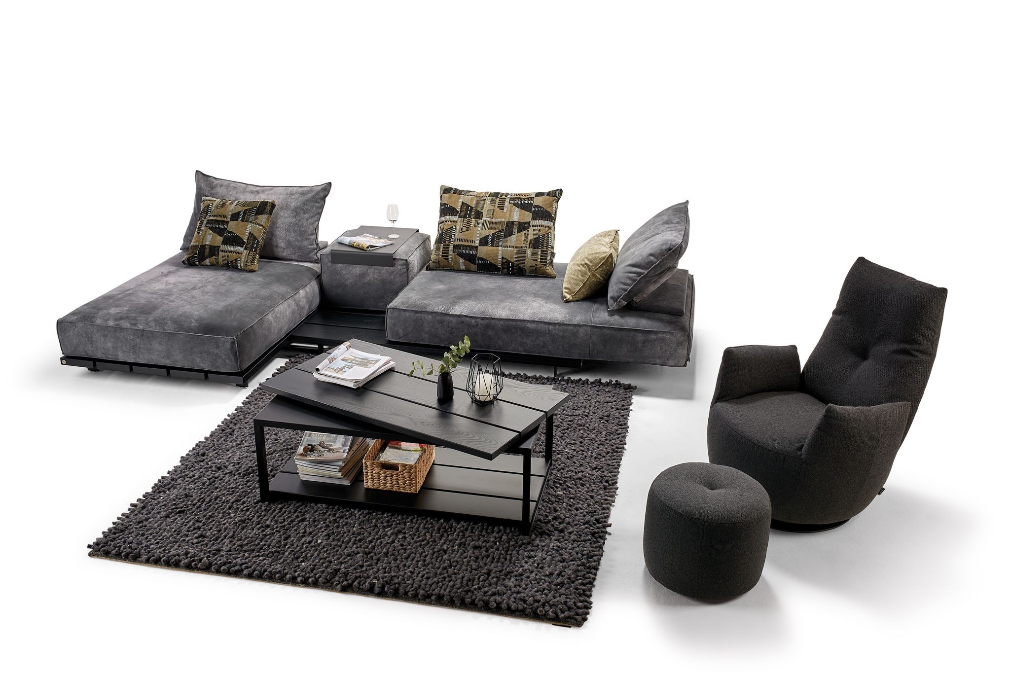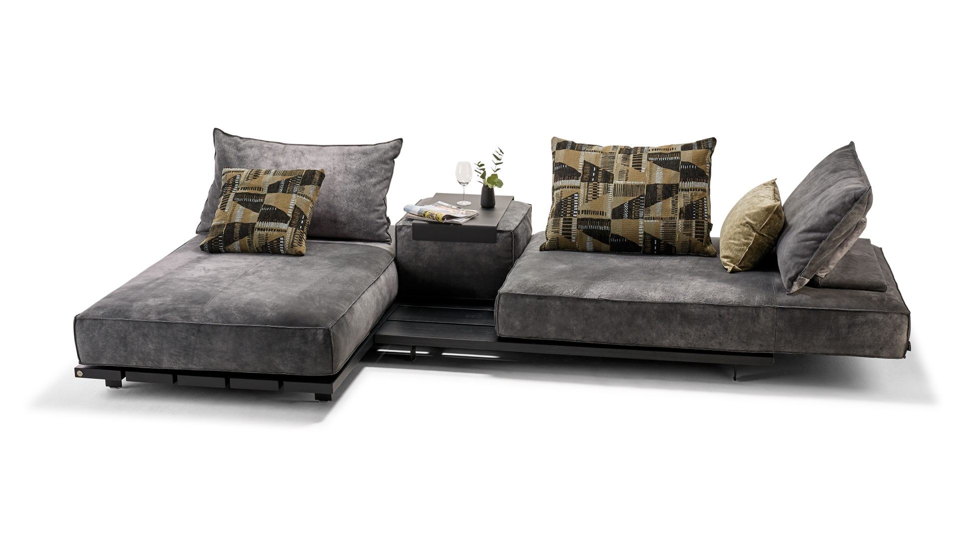 V dnešní době jsou pro obytné prostory často vyhledávaná flexibilní a víceúčelová řešení. Tento čalouněný nábytek se svým individuálně konfigurovatelným uspořádáním a možnostmi doplňků velmi ladí s dobou. Základním prvkem je masivní dřevěná podesta na ocelové spodní konstrukci s vrchním čalouněným sedákem. Díky 360 stupňovému otočnému a posuvnému mechanismu lze sedáky umísťovat do různých pozic a poloh, dokonce mohou vyčnívat až 60 centimetrů mimo podesty. K vytvoření individuálního uspořádání obývacího pokoje nebo dokonce příležitostného lůžka stačí pouze dva základní prvky s různými doplňky, jakými jsou třeba polštáře s nastavitelným sklonem, područky a taburety.