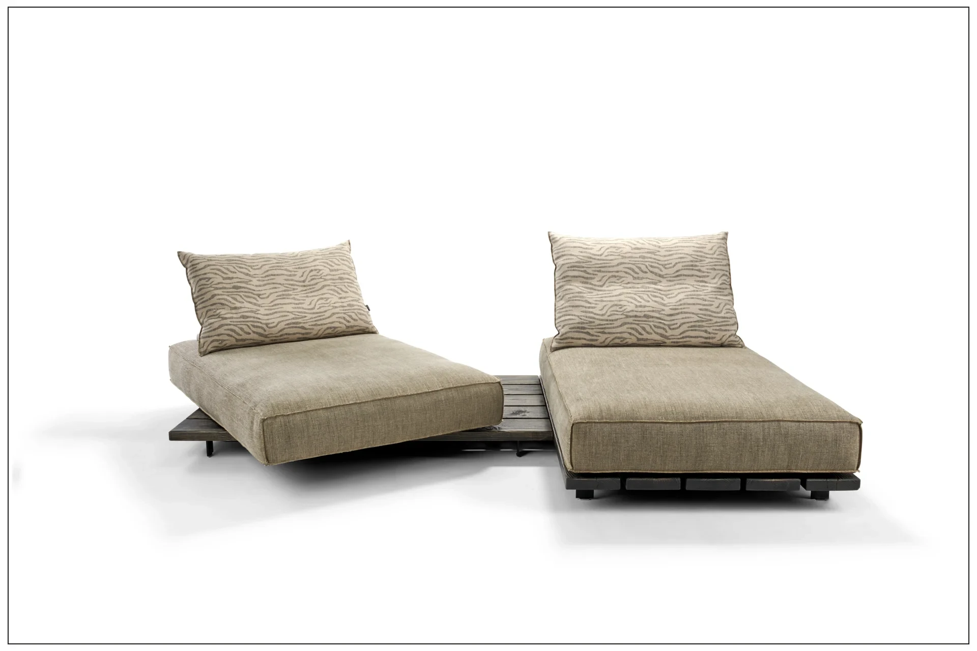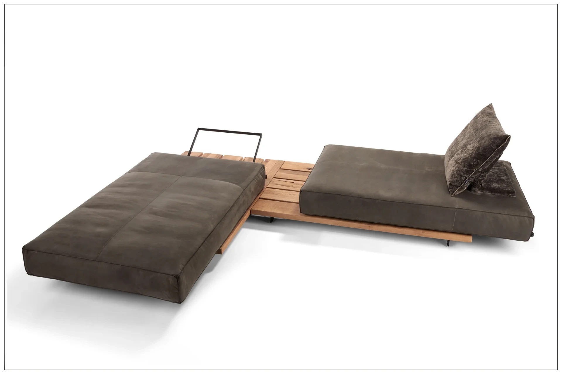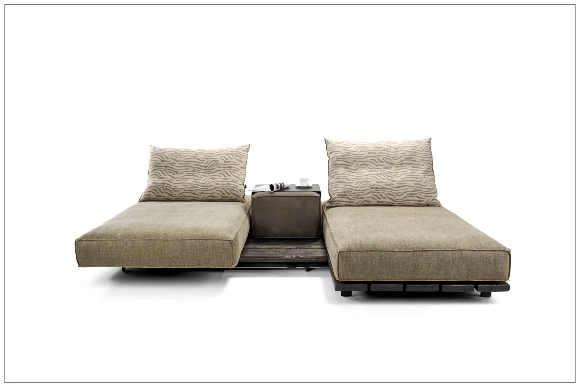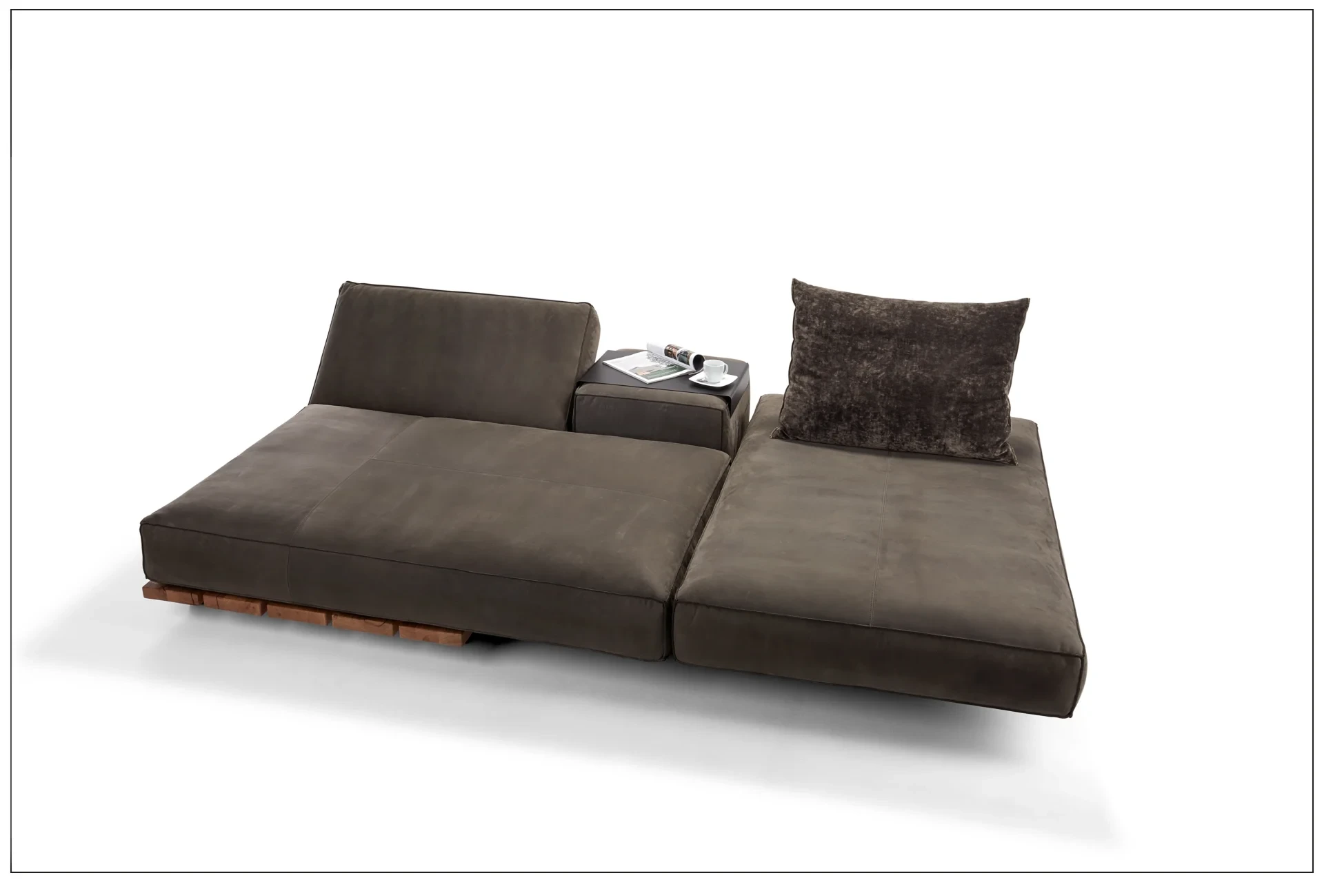 V dnešní době jsou pro obytné prostory často vyhledávaná flexibilní a víceúčelová řešení. Tento čalouněný nábytek se svým individuálně konfigurovatelným uspořádáním a možnostmi doplňků velmi ladí s dobou. Základním prvkem je masivní dřevěná podesta na ocelové spodní konstrukci s vrchním čalouněným sedákem. Díky 360 stupňovému otočnému a posuvnému mechanismu lze sedáky umísťovat do různých pozic a poloh, dokonce mohou vyčnívat až 60 centimetrů mimo podesty. K vytvoření individuálního uspořádání obývacího pokoje nebo dokonce příležitostného lůžka stačí pouze dva základní prvky s různými doplňky, jakými jsou třeba polštáře s nastavitelným sklonem, područky a taburety.