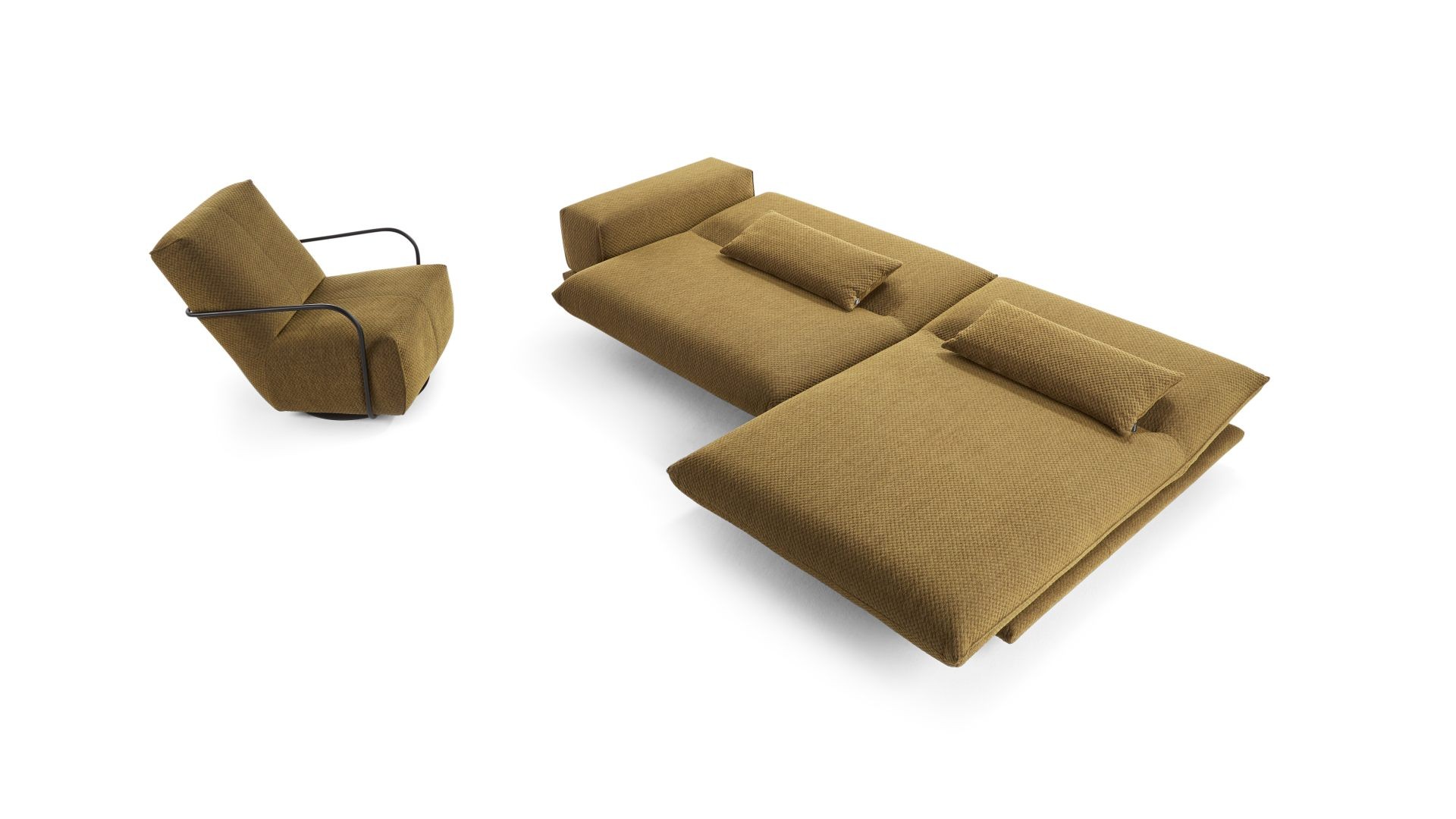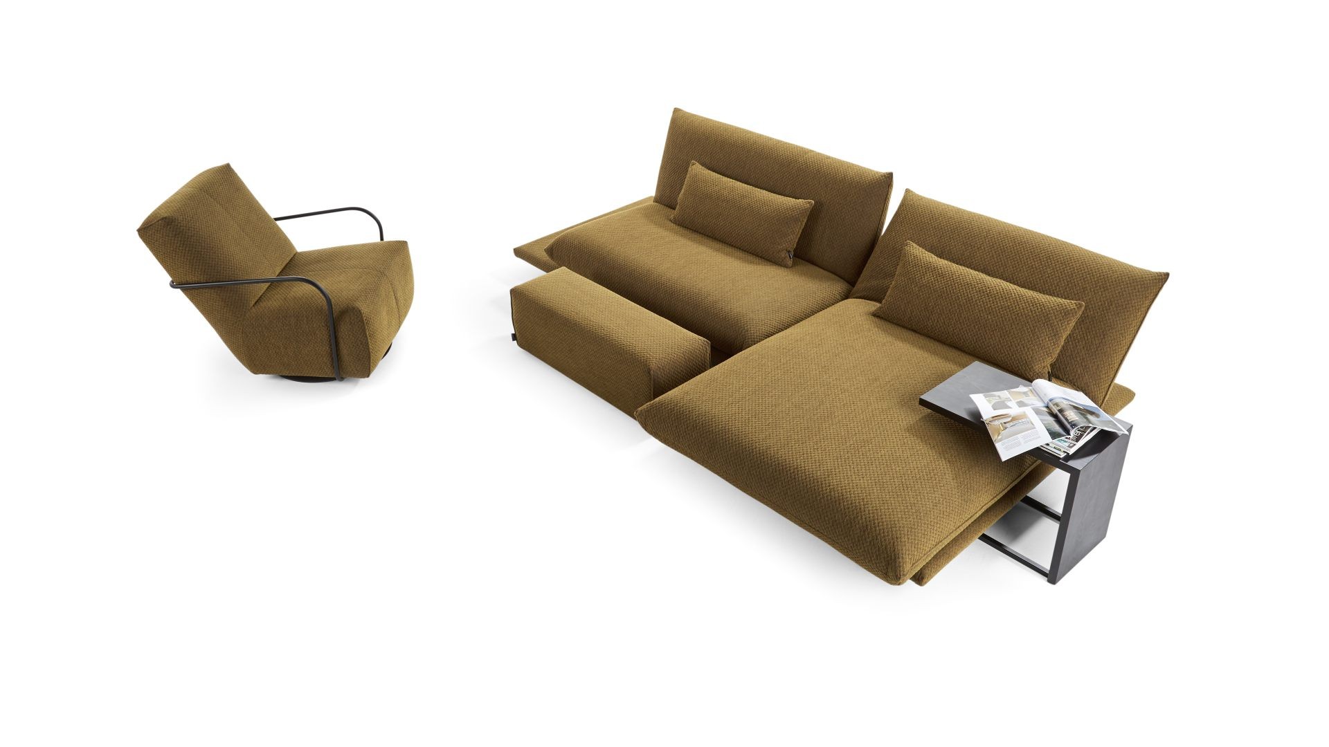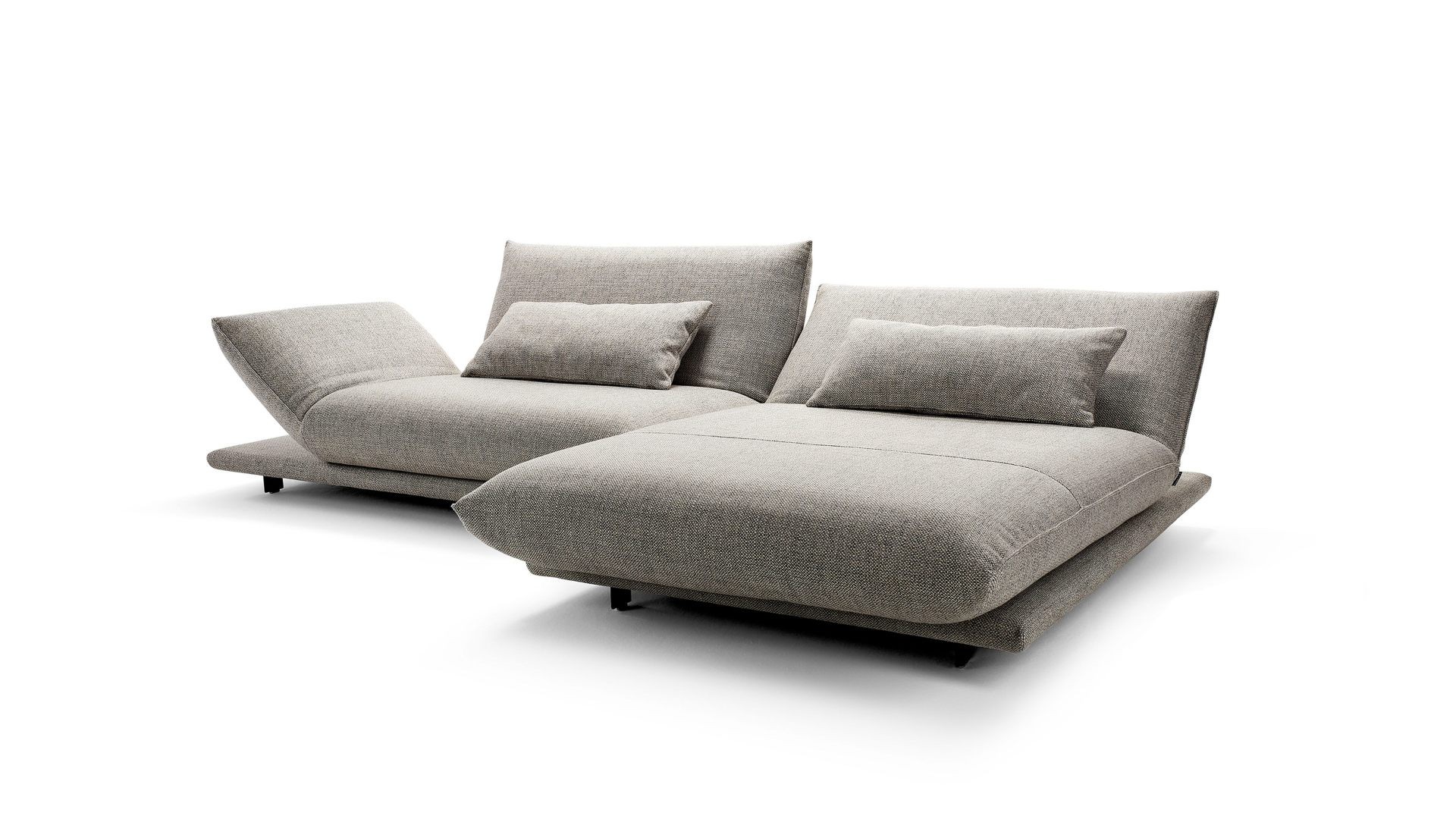 MAGICKÉ MOMENTY. SEDĚT, ODPOČÍVAT, SPÁT. VŠESTRANNÁ MODULÁRNÍ ŘADA S JEMNÝMI, ŽENSKÝMI LINIEMI. ČALOUNĚNÍ, PODRUČKY A ZÁDOVÉ PRVKY JSOU MĚKCE ZAOBLENÉ NA ZDÁNLIVĚ PLOVOUCÍ PLATFORMĚ. PODRUČKY POHOVKY JSOU MANUÁLNĚ NASTAVITELNÉ, ČALOUNĚNÉ PRVKY S MOTORIZOVANÝMI FUNKCEMI LZE PLYNULE POSUNOUT DO HORIZONTÁLNÍ POLOHY. K DISPOZICI JSOU RŮZNÉ POTAHY (LÁTKA/KŮŽE) A TYPY ŠVŮ. UNIKÁTNÍ KUSOVÁ VÝROBA.