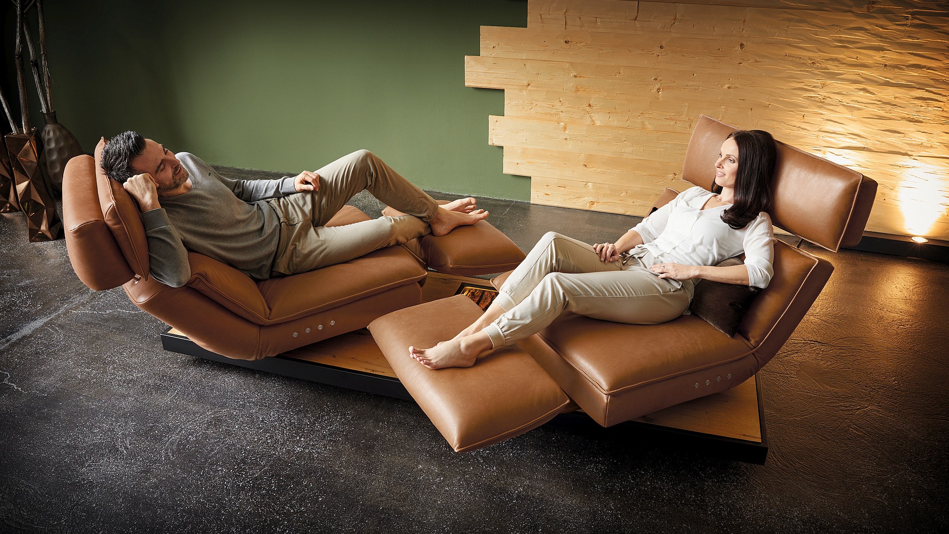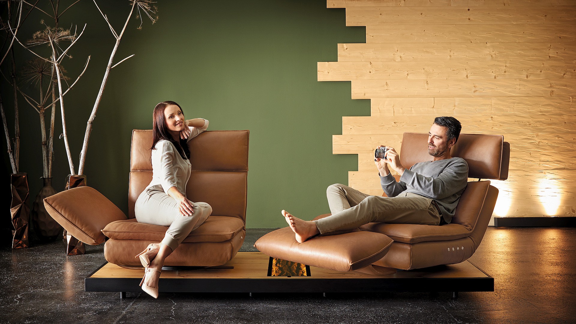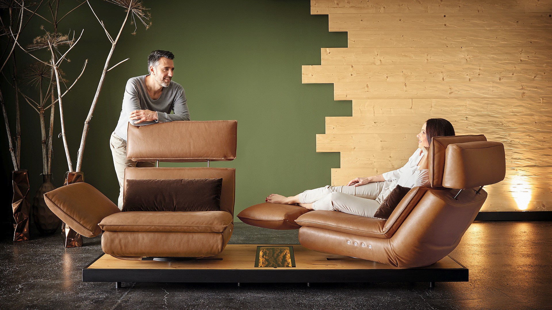 Naprostý unikát - z loketní opěrky jednoduše podnožka, ze sedadla relaxační lehátko. Multifunkčnost, inovace, evoluce. EDON je skutečným pohybovým umělcem. Vrcholem je však loketní opěrka: jedním plynulým pohybem se otočí, aby vytvořila opěrku nohou, a promění pohovku v pohodlná křesla.