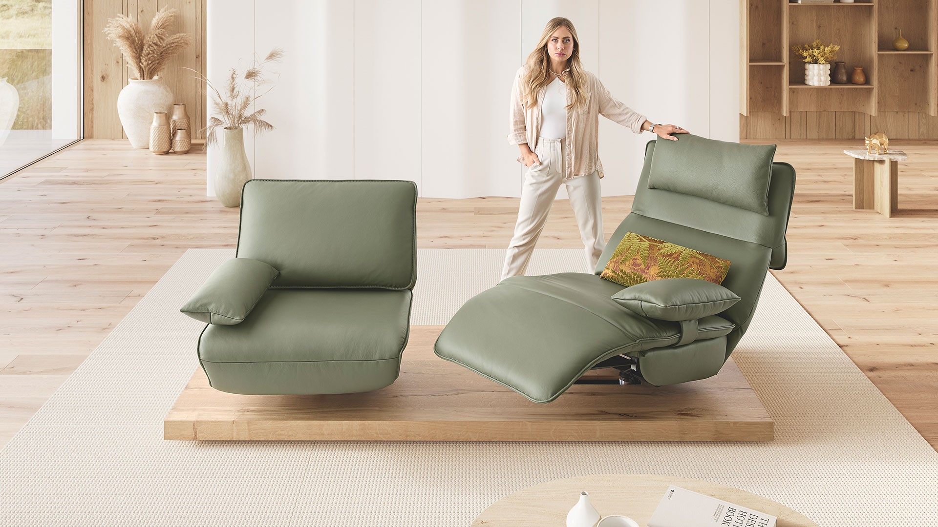 Sedačka ELLIS představuje čistý a chytrý styl bydlení. Jeho nezaměnitelný charakter definují výrazné tvary a linie. Nabízí relaxační funkci s motorickým nastavením opěrky zad a podnožky do tzv. heart-balance polohy, manuální otočení až o 320 stupňů (160° vlevo a 160° vpravo) a manuální boční posuv. Volitelně je k dispozici LED podsvícení základny a na výběr je z různých typů podstavců. Čalounění je navrženo v ležérním, volném stylu.