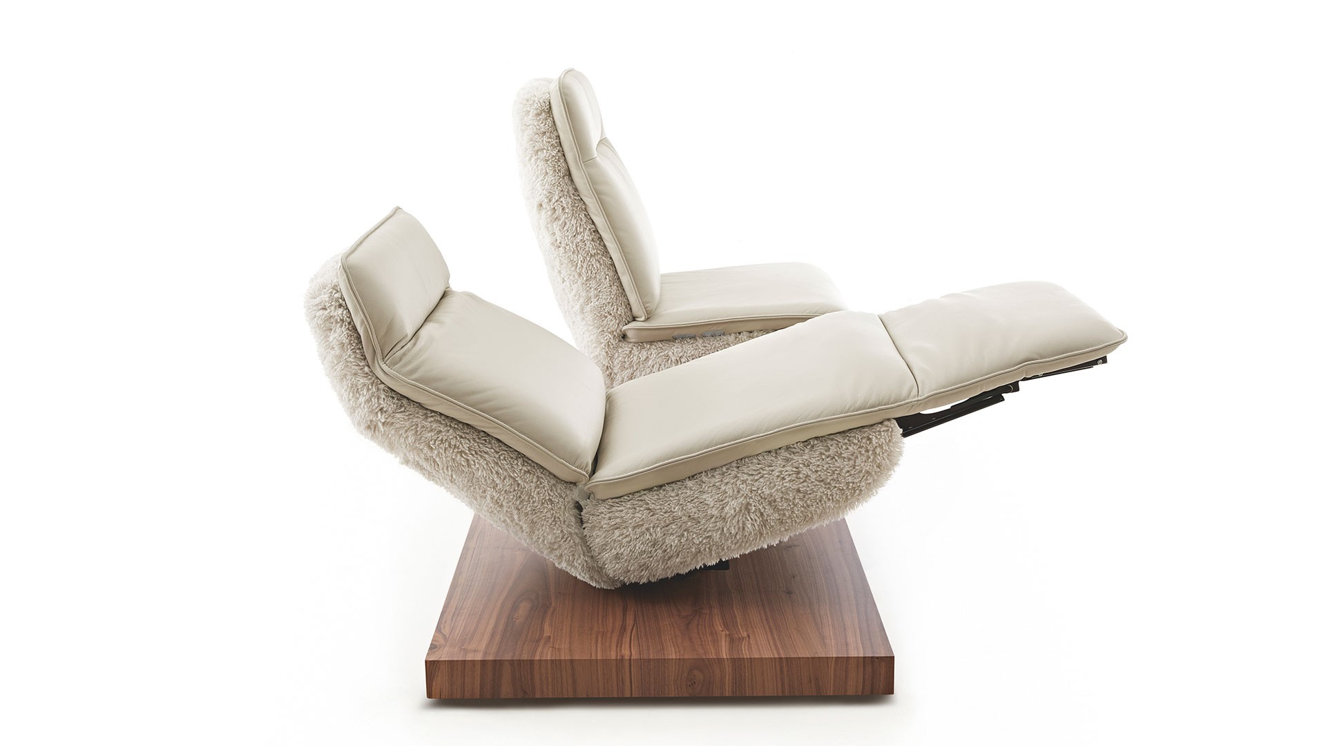 Sedačka EVINO představuje čistý a chytrý styl bydlení. Výrazné tvary a linie podtrhují jeho vizuální přitažlivost. Sedáky s organickým vzhledem se téměř beztížně pohybují ve více směrech po lineárním podstavci. Překvapivé je, že během okamžiku se sedák promění v relaxační lehátko s polohou heart-balance. Opěrku hlavy lze nastavit ručně, zatímco opěrka zad a podnožka jsou nastavitelné motoricky. Křeslo je manuálně otočné až o 320 stupňů (160° vlevo a 160° vpravo) a umožňuje také ruční boční posuv. Volitelně je možné vybavit základnu LED podsvícením a na výběr je několik variant podstavců. Čalounění je provedeno v ležérním, volném stylu.