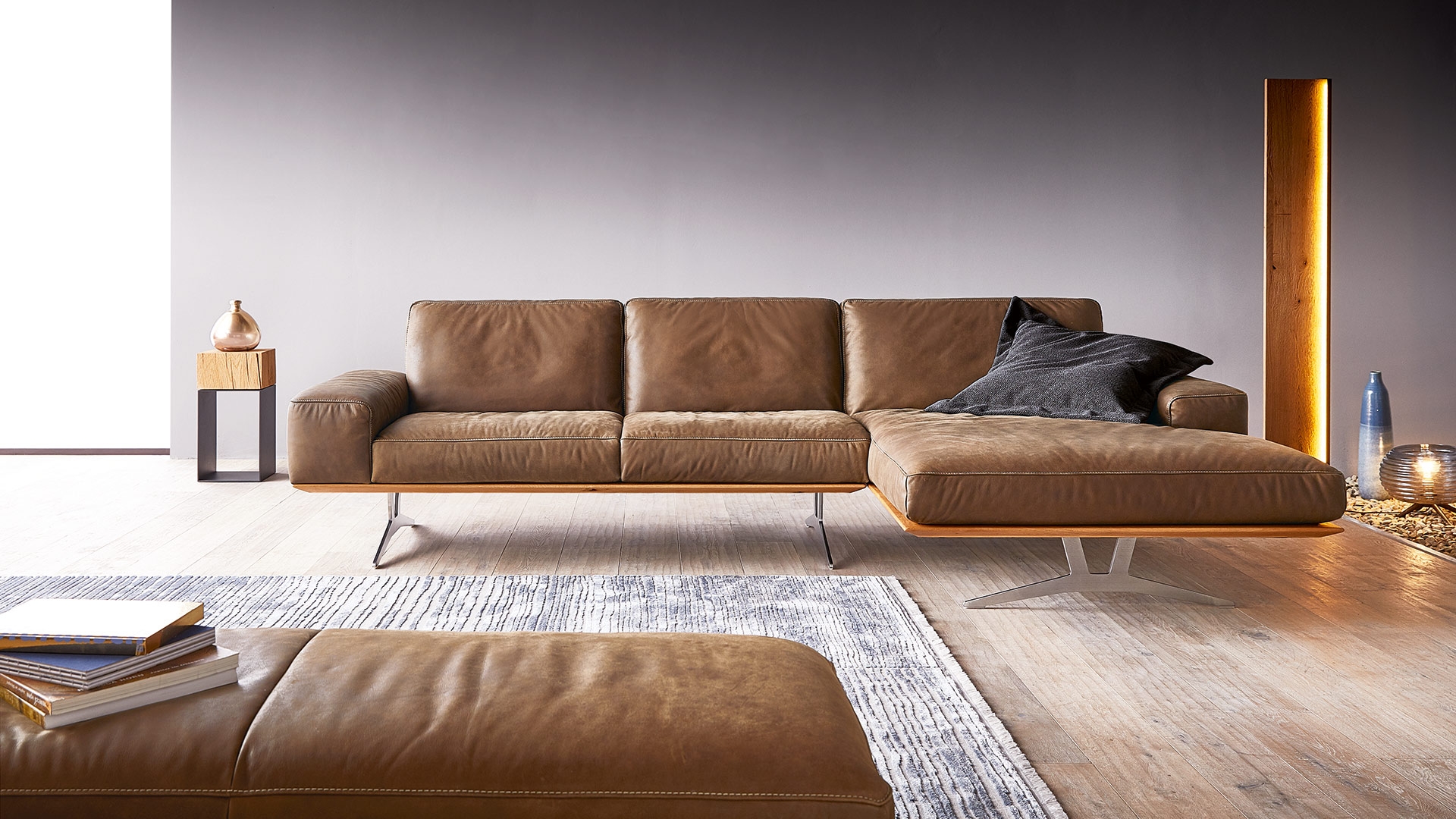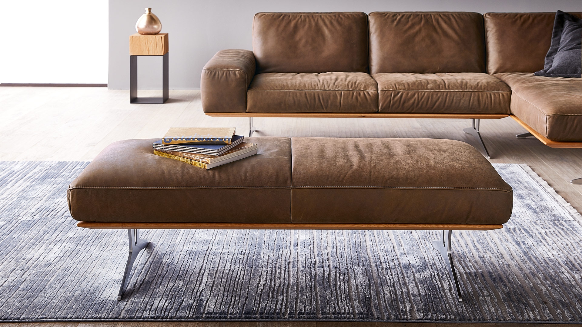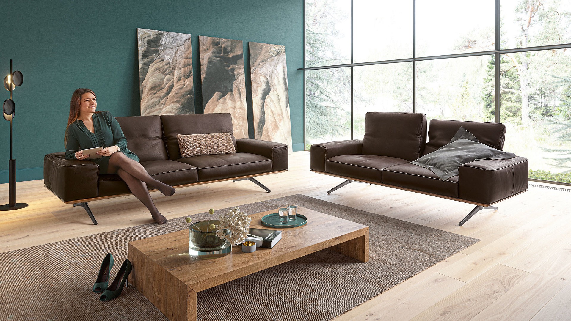 HIERO je modulární sedací souprava se dvěma různými výškami zad. Nosný rám je k dispozici v čalounění nebo se zvýrazněním masivního dřeva z dubu nebo ořechu. Pro maximální pohodlí jsou k dispozici tři tvrdosti sezení. Jednoduché je nastavení sklonu zad a opěrka hlavy u vyšší verze opěradla, poskytují vynikající oporu v jakékoli poloze pro čistou relaxaci.