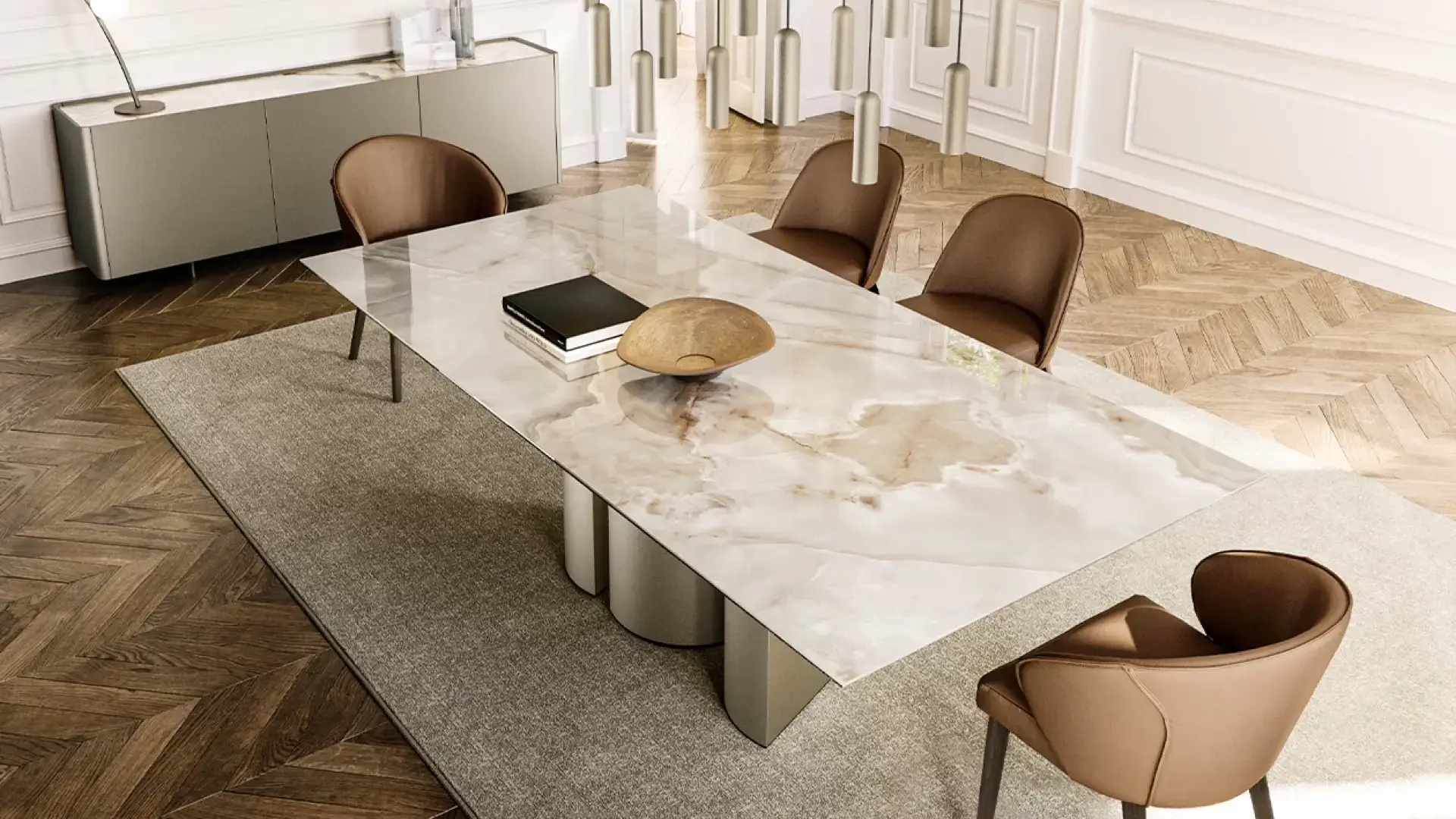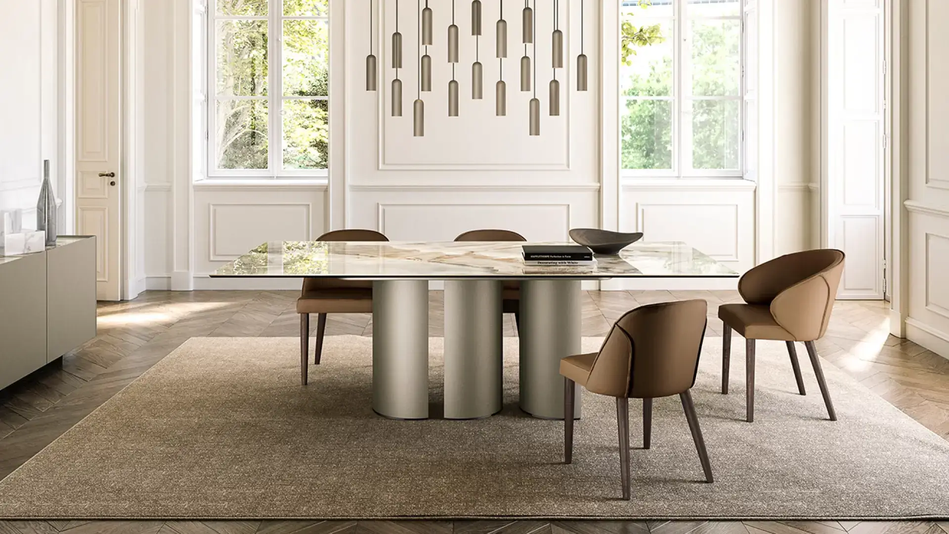 Elegance a funkčnost se dokonale snoubí, když mluvíme o moderním jídelním stolu Plai. Design Nello Palomba Jednoduchost zaoblených nohou ve tvaru půlměsíce se snoubí s vytříbeností materiálů a důrazem na detail. Designový stůl, jehož nohy se liší počtem a polohou v závislosti na velikosti a mění tvar podle úhlu, z něhož se na ně díváte, což dodává rafinovanost a kvalitu modernímu stolu s nadčasovým designem. Podnož je lakovaná v několika barevných variantách. Stolová deska může být obdélníková nebo se zaoblenými hranami v provedení keramika, mramor, sklo nebo dřevo.