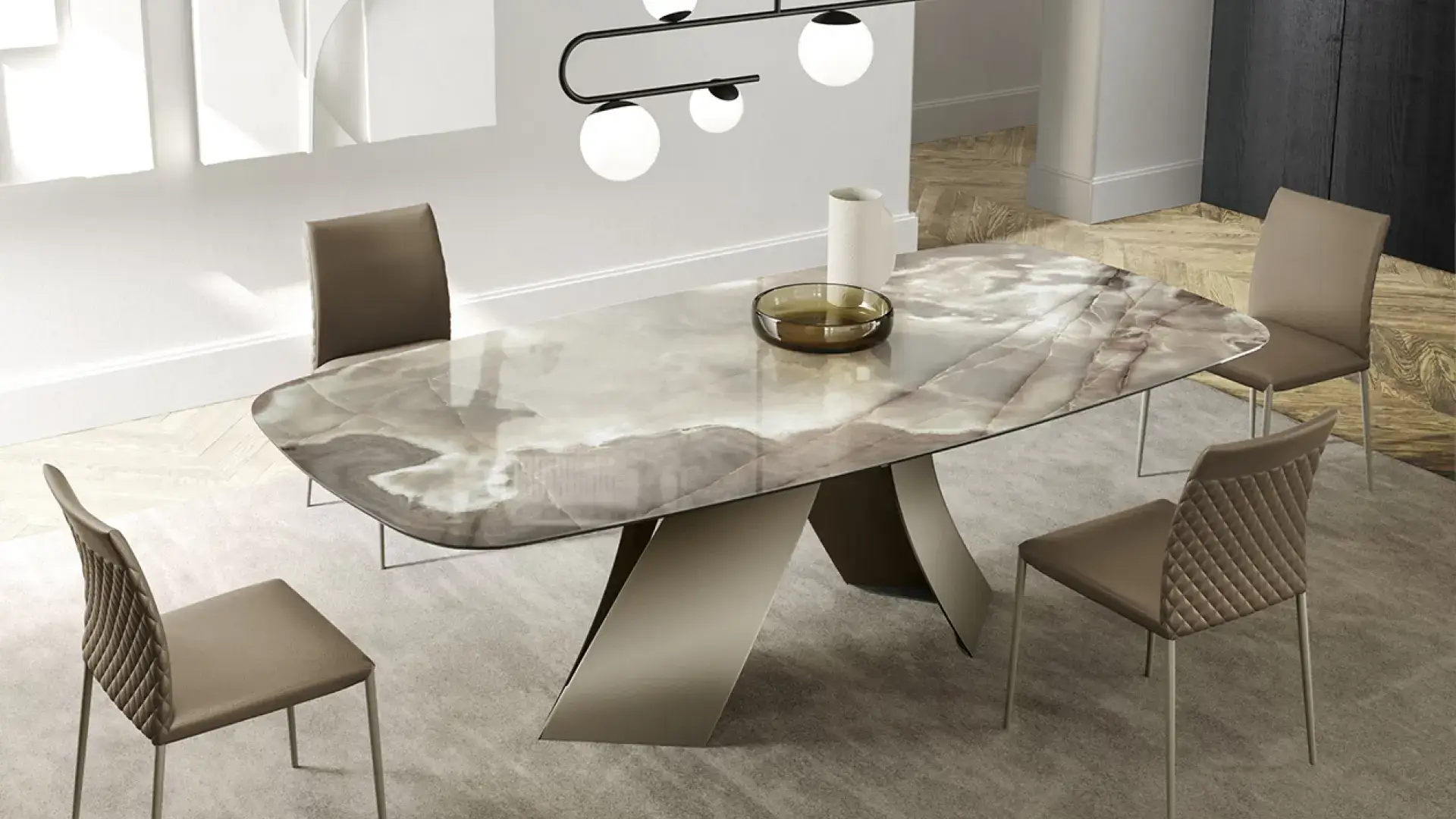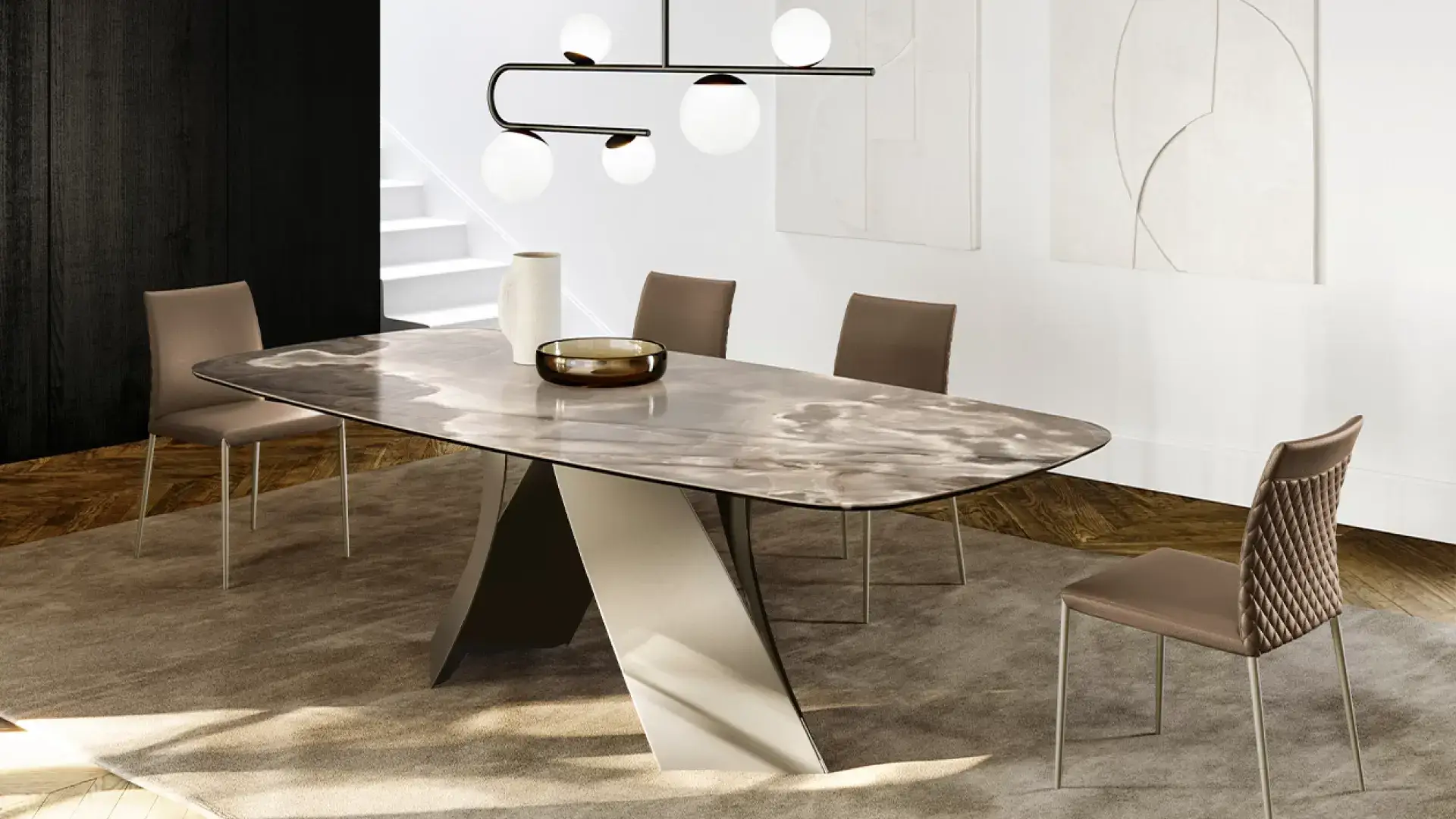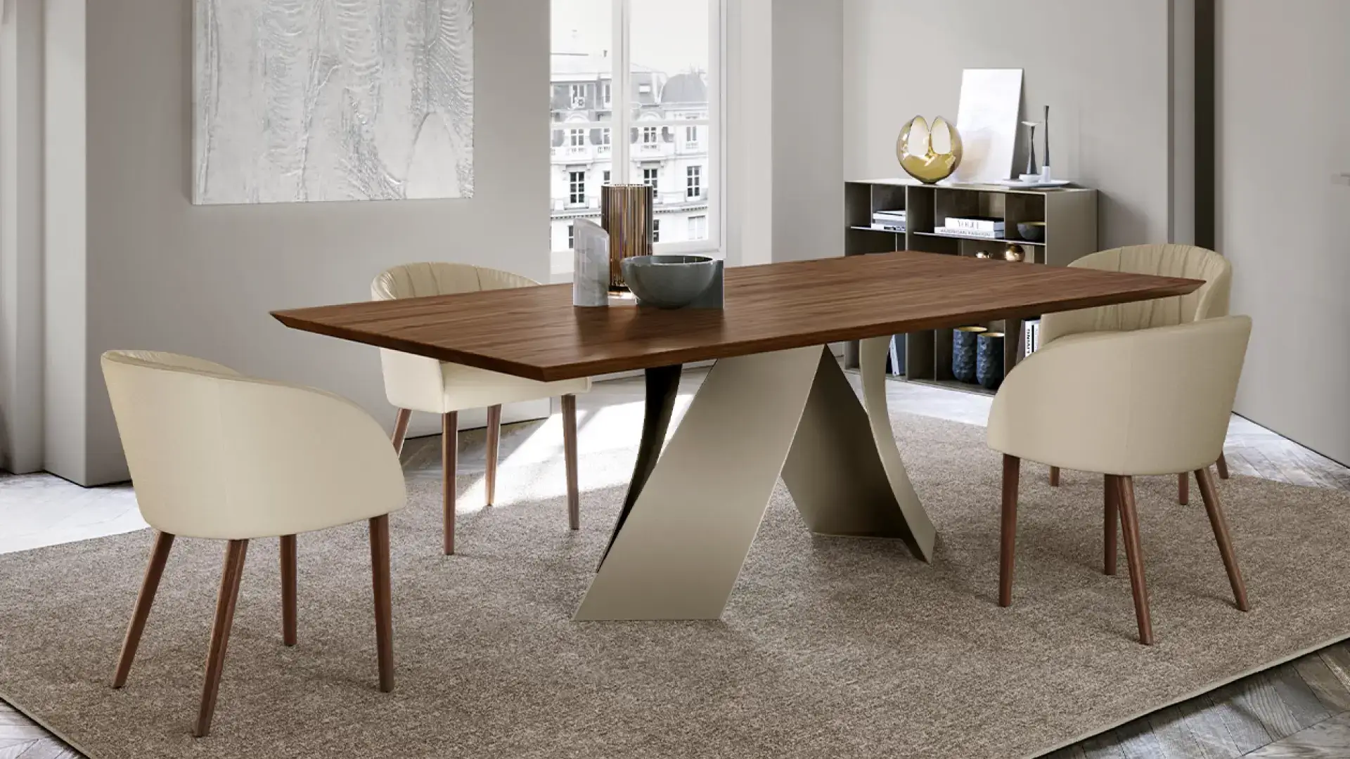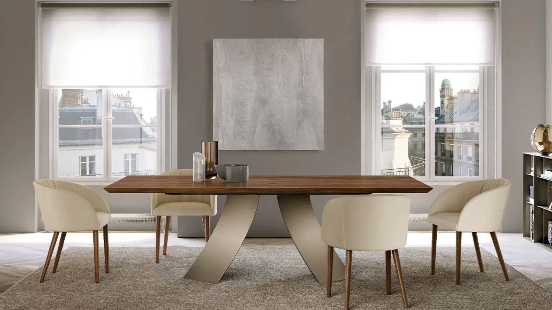 Stůl Twist patří k modernímu nábytku, který nejlépe odpovídá současnému vkusu, aniž by byl přehnaný. Jeho eklektická kovová podnož je tvořena dvěma nohami s jemnými liniemi, které však zároveň tvoří pevnou a rozhodnou konstrukci. Podnož je z kovu lakovaného v několika barevných variantách. Stolová deska může být obdélníková nebo se zaoblenými hranami v provedení keramika, mramor, sklo nebo dřevo.