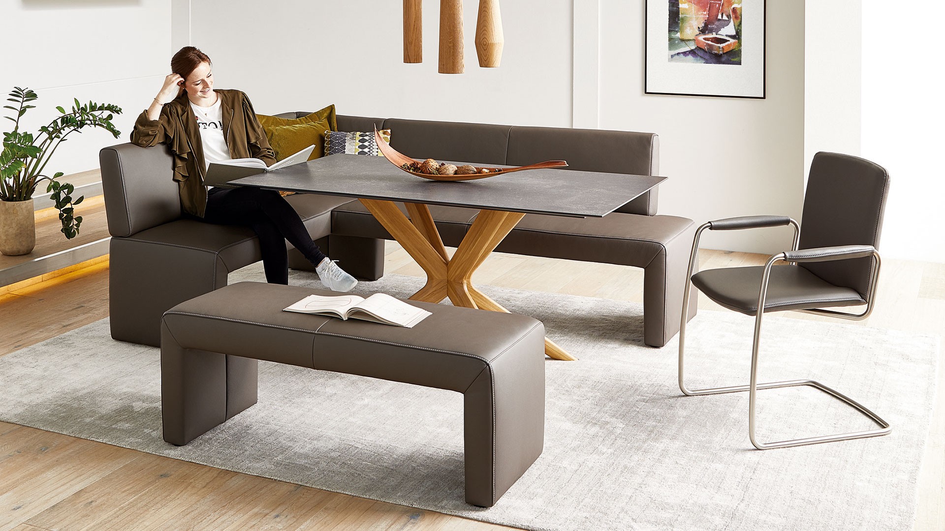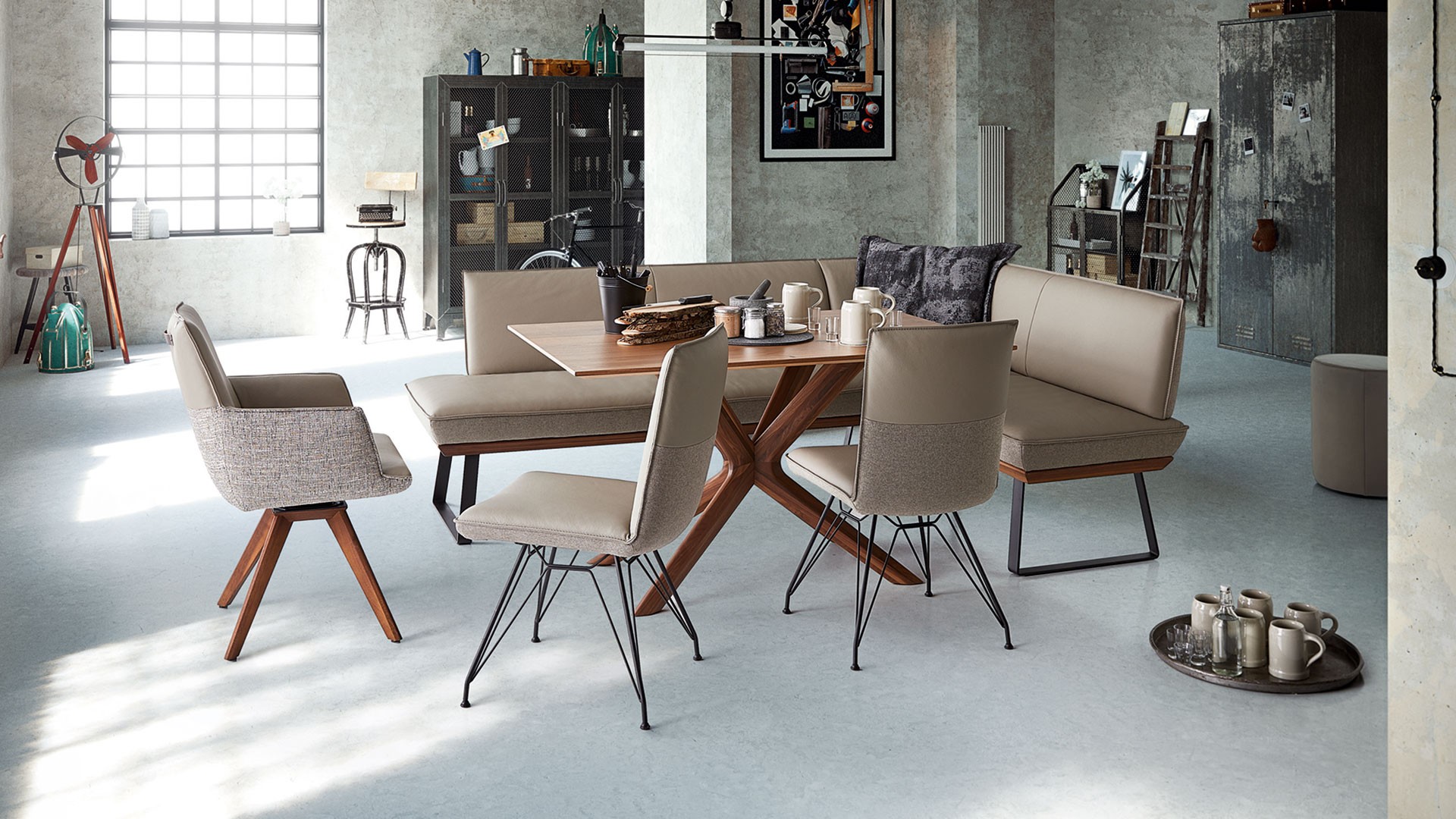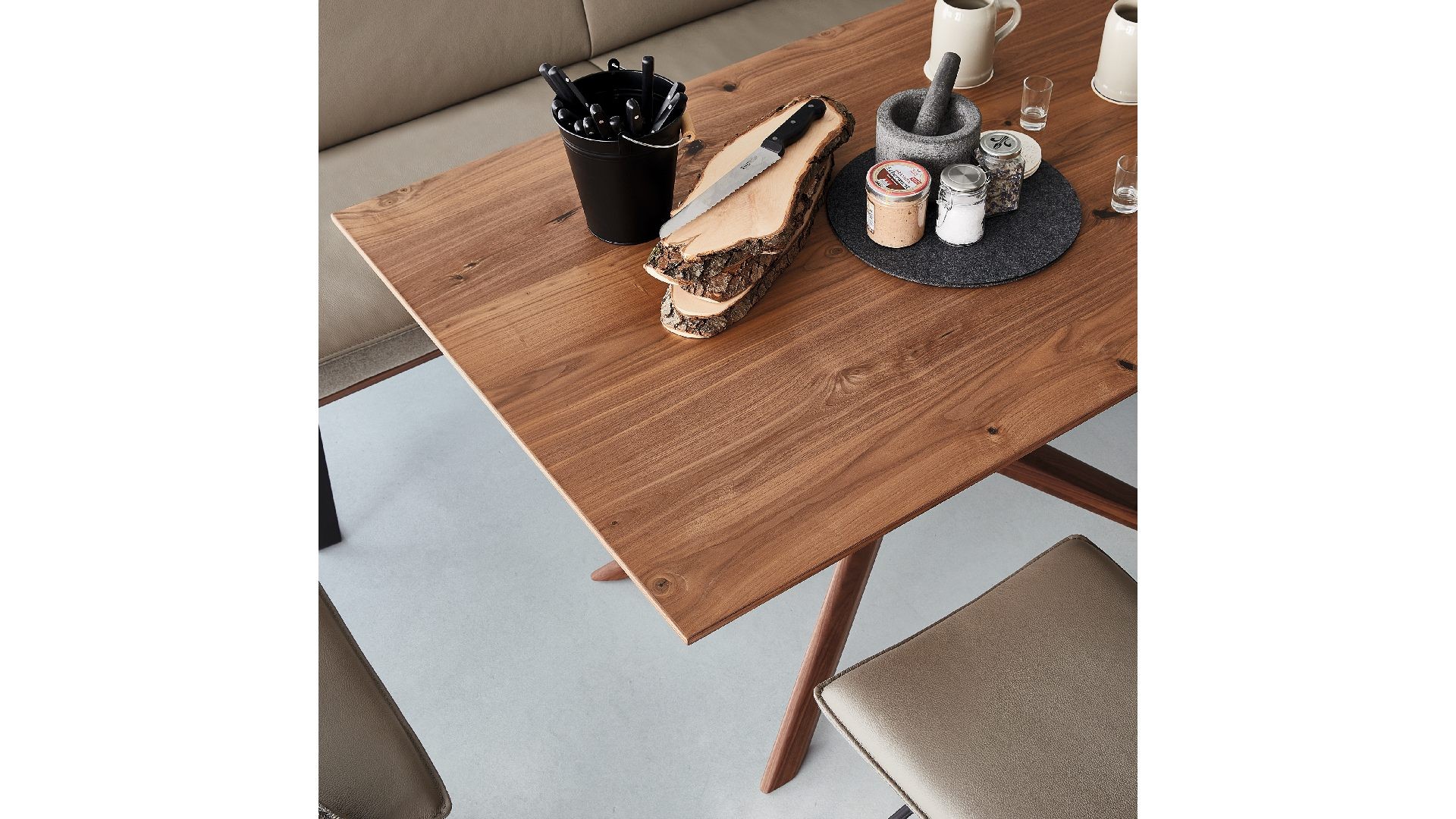 Stolová deska masivní dřevo, dýha několika dekorů, keramika nebo HPL. Podnoží masivní dřevo několika dekorů. Rozměr: 180 x 90 / 160 x 90 / 140 x 90