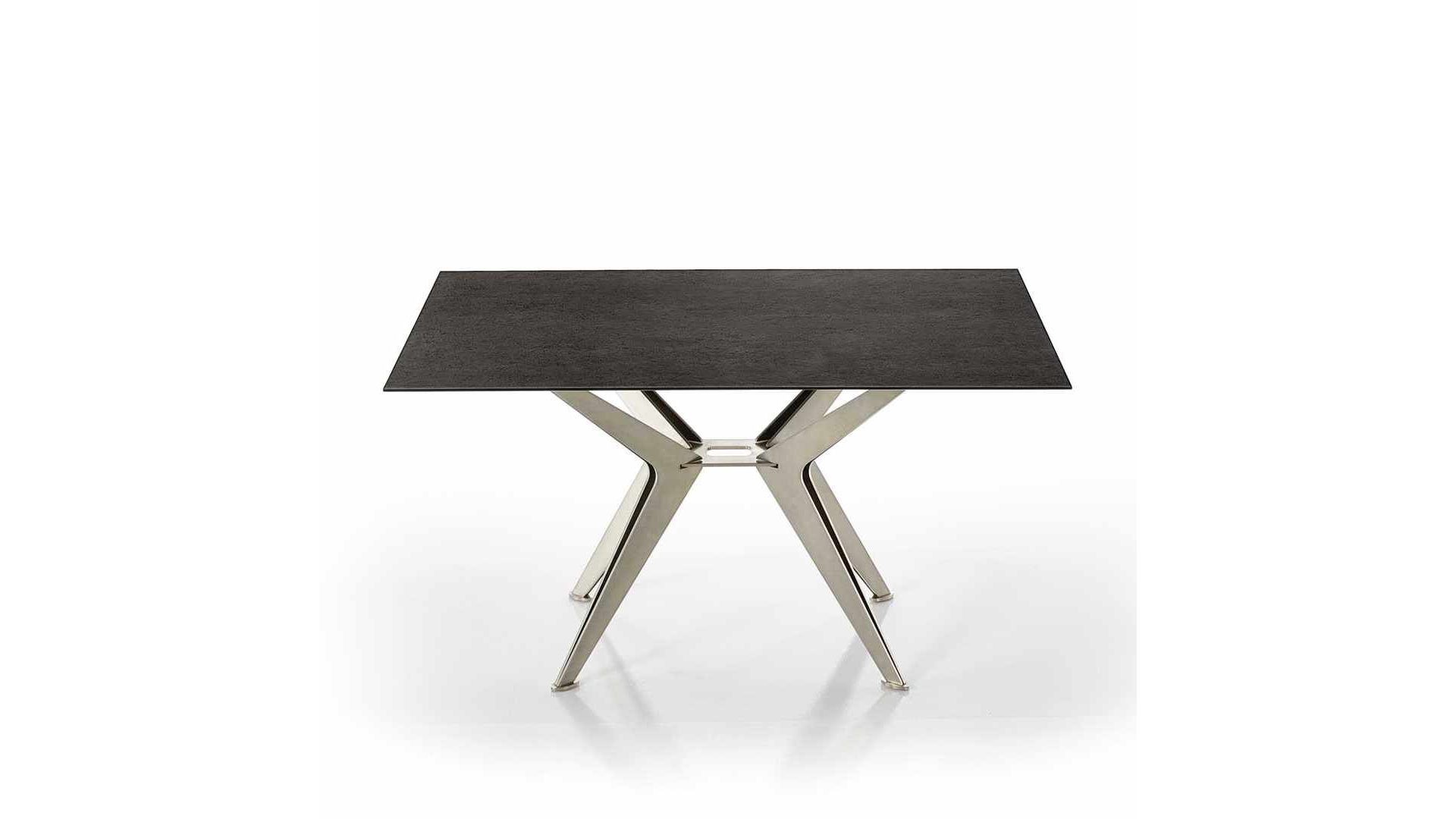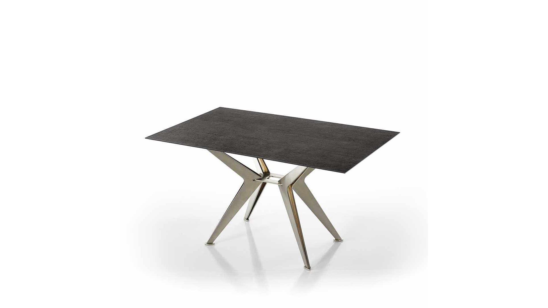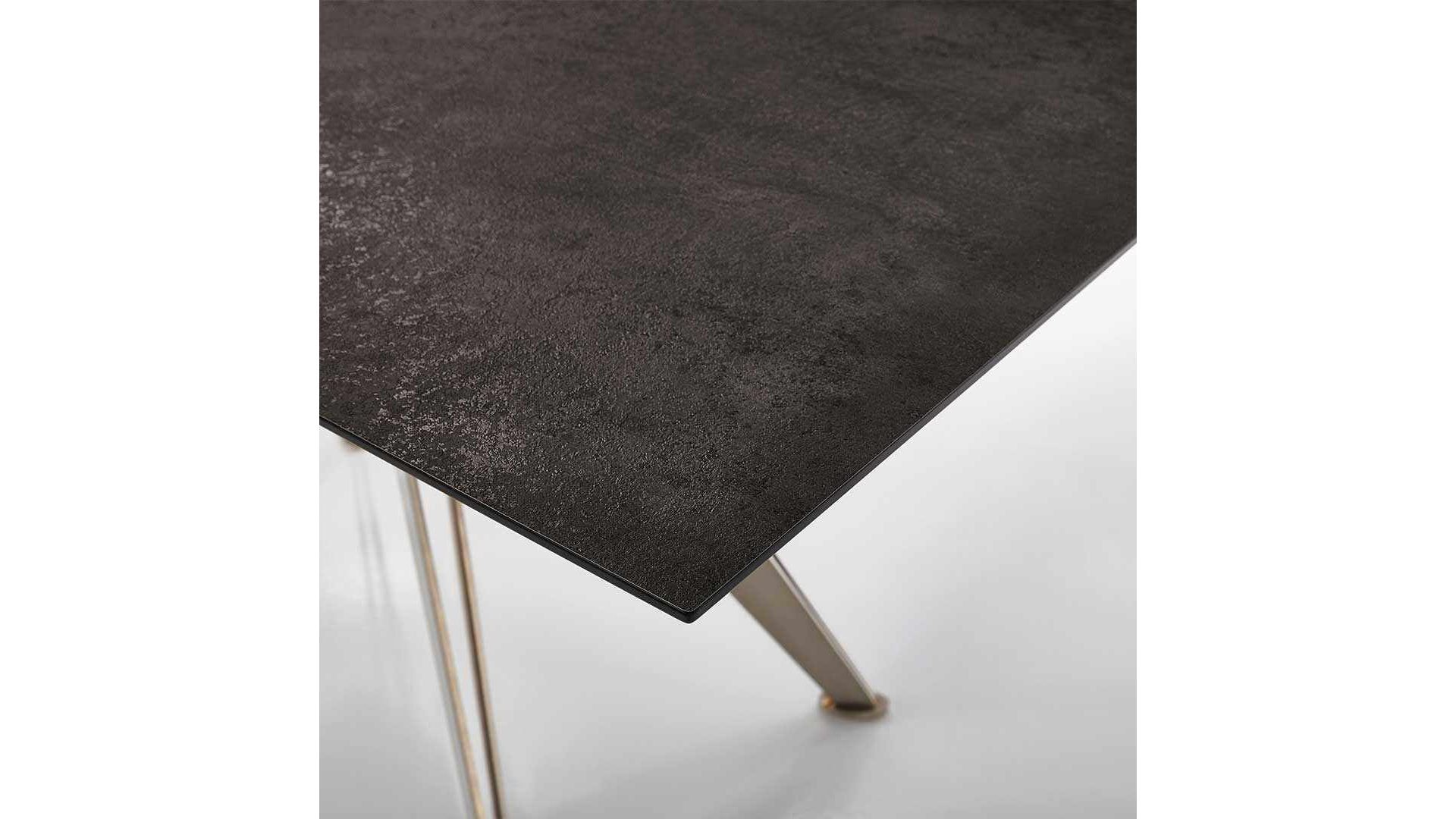 Stolová deska masivní dřevo, dýhy několika dekorů, keramika nebo HPL. Podnoží černý matný lak nebo vzhled nerezové oceli. Rozměr: 220 x 100 / 200 x 100 / 180 x 90 /160 x 90 / 140 x 90 (dřevo a keramika).