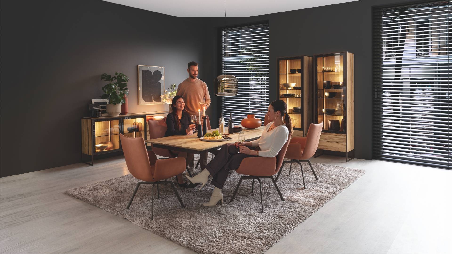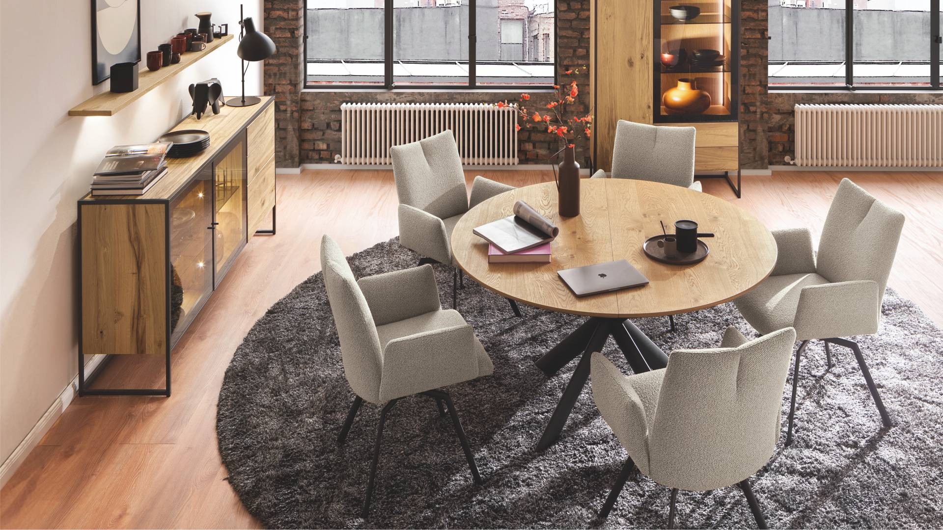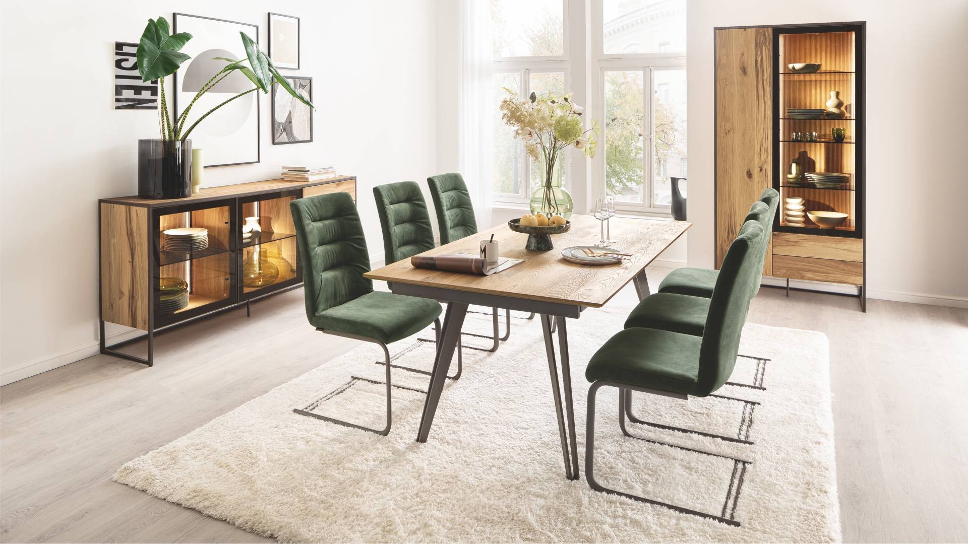 Scházíme se doma. Pro příjemnou atmosféru, která přináší pohodu tady a teď: S TAGENOU naši designéři dále vylepšili přirozenou krásu našeho nábytku. Zvláštní domácký pocit, který poskytují přírodní materiály, získává s TAGENOU osvěžující nový charakter. Protože touha po jídelně s otevřenou a vzdušnou atmosférou může být málokdy tak zcela uspokojena jako s individuálním kouskem z této řady. Díky tenkým kovovým rámům se exkluzivní jednotlivé kusy a kombinace téměř vznášejí. A dejte světlému dubovému dřevu dostatek prostoru, aby odhalilo svou přirozenou krásu. Smyslný zážitek, který je ještě umocněn zvýrazněnými povrchy s drážkovým vzhledem.