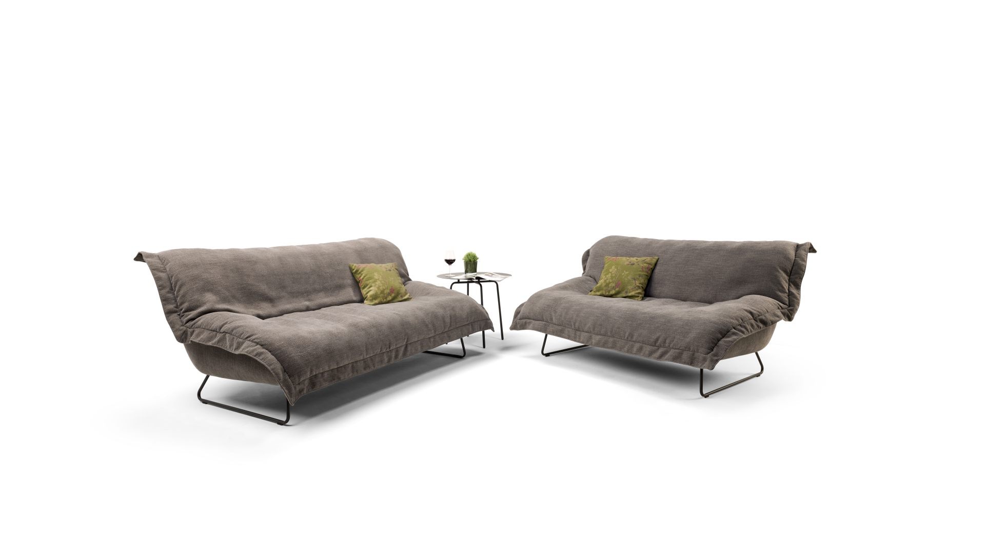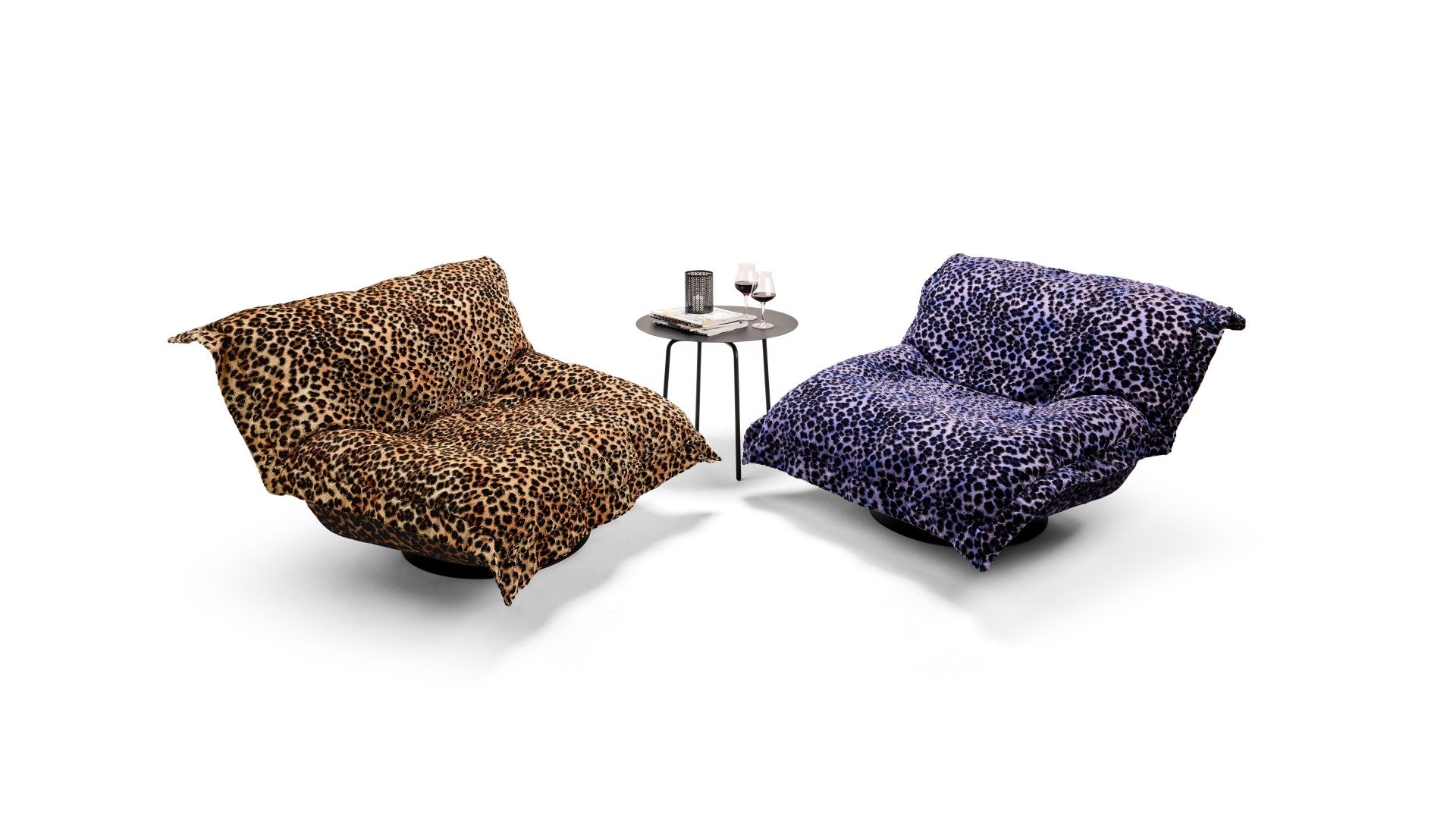 LEŽÉRNÍ DESIGN SE VZHLEDEM DEKY, PŘIPEVNĚNÝ K SEDAČCE NEBO POHOVCE, ZAJIŠŤUJE MIMOŘÁDNĚ MĚKKÉ POHODLÍ PŘI SEZENÍ S FAKTOREM MAZLENÍ. K DISPOZICI JAKO OTOČNÉ HOUPACÍ KŘESLO, KŘESLO, 2MÍSTNÁ POHOVKA A 2,5MÍSTNÁ POHOVKA. K DISPOZICI JSOU 2 VARIANTY ZPRACOVÁNÍ: Z JEDNÉ NEBO 2 RŮZNÝCH LÁTEK. DESIGN JE VZRUŠUJÍCÍ, KDYŽ JE KORPUS POTAŽEN HLADKOU LÁTKOU A POTAH JE VYROBEN ZE VZOROVANÉ LÁTKY. VYSNĚNÉ KOMBINACE PRO ODVÁŽNÉ OBYVATELE! K DISPOZICI POUZE V LÁTCE. PODSTAVCE JSOU VYROBENY Z OCELI, PRÁŠKOVĚ LAKOVANÉ ČERNOU BARVOU. UNIKÁTNÍ KUSOVÁ VÝROBA.