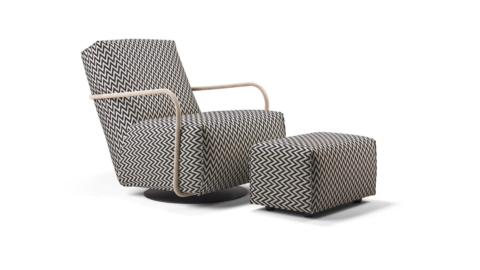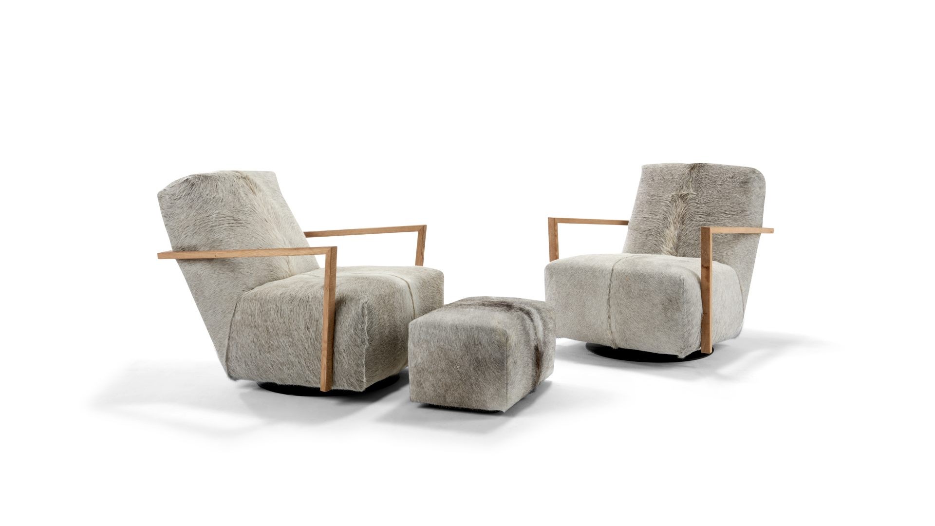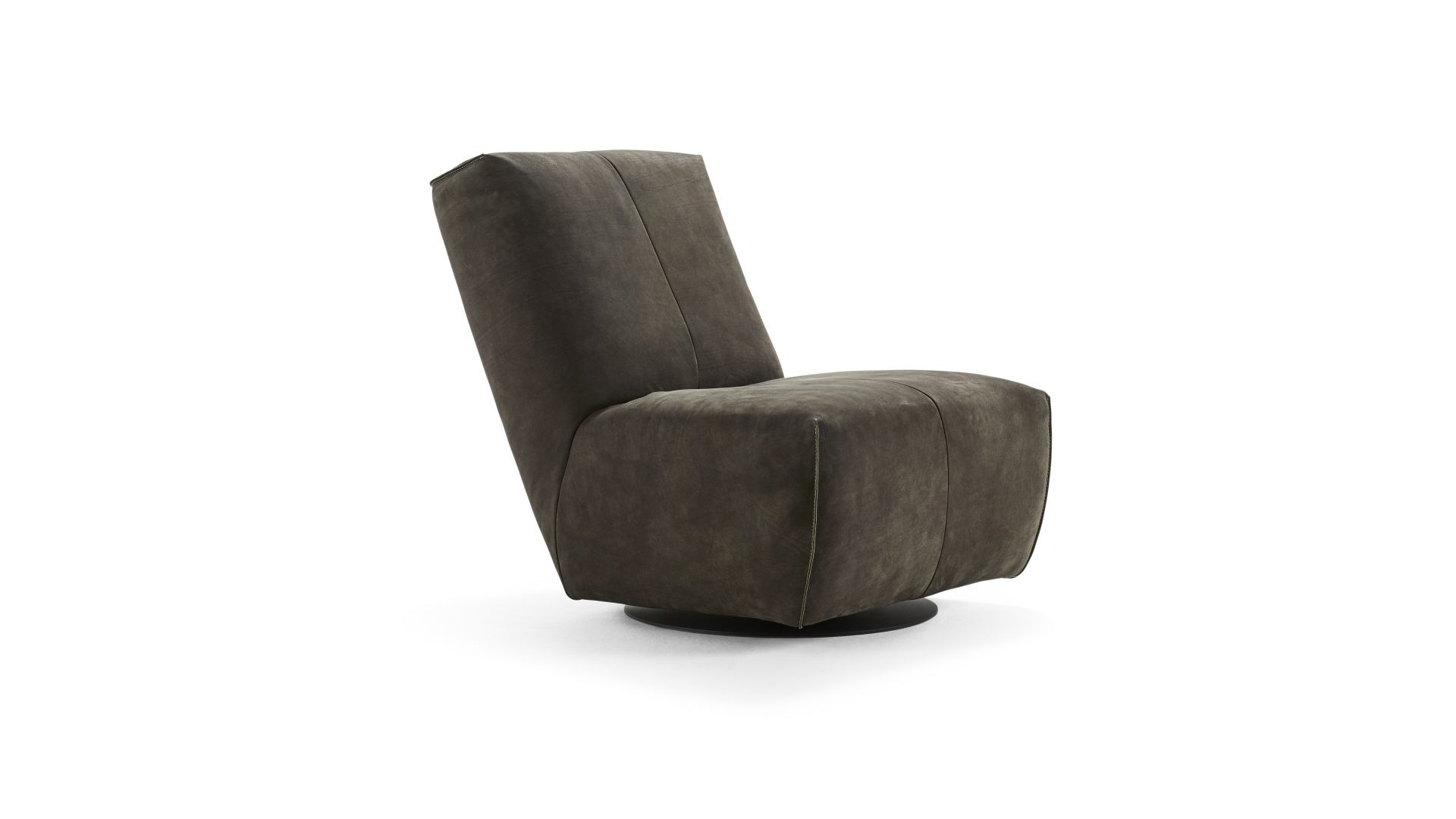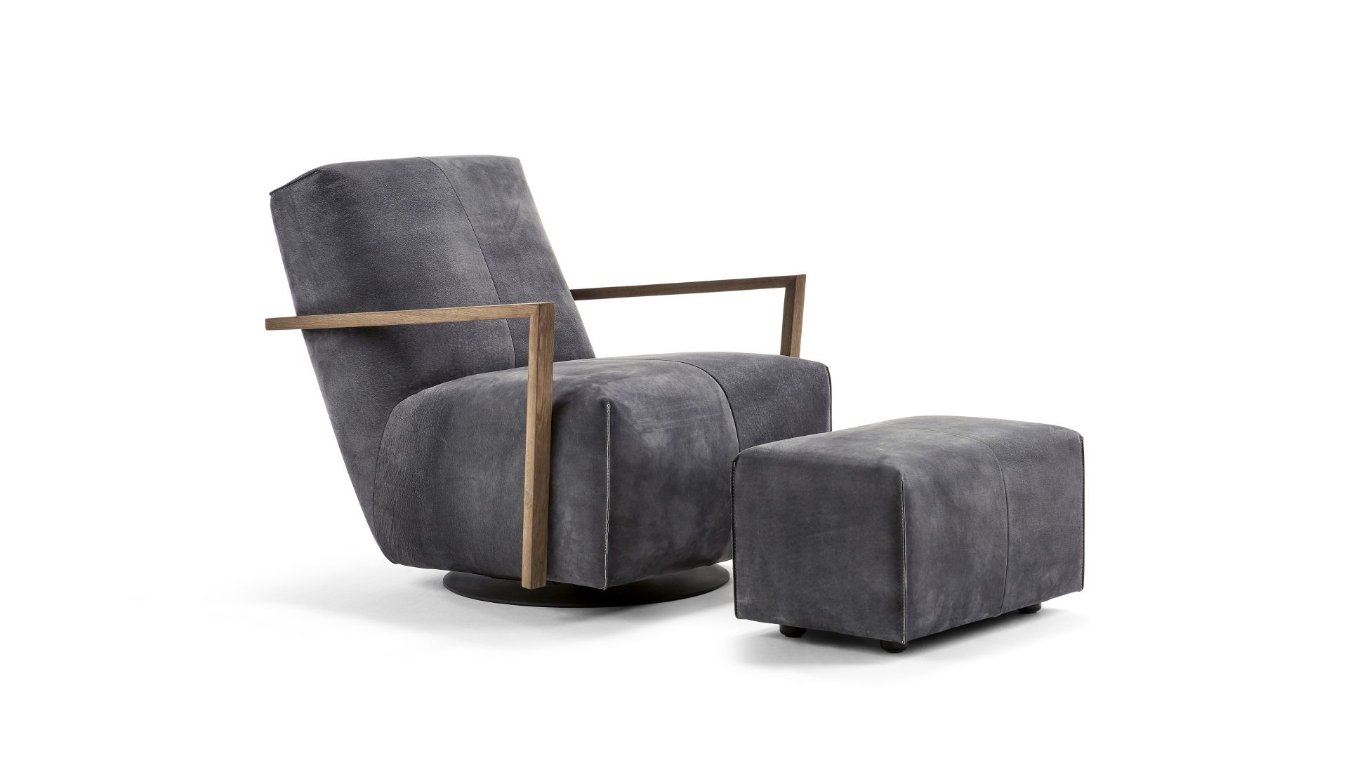 OTOČNÉ A HOUPACÍ KŘESLO S ELEGANTNÍM MIXEM MATERIÁLŮ. FUNKCE OTOČENÍ O 360°. LEHKÉ, JEMNÉ PODRUČKY, VOLITELNĚ VYROBENÉ ZE DŘEVA, KOVU NEBO OPLÉTANÉ. KOVOVÁ ZÁKLADNÍ DESKA JE V ČERNÉM MATU. DRUHY DŘEVA, POTAHY (LÁTKA/KŮŽE) A TYP ŠVU JE MOŽNÉ VOLIT.