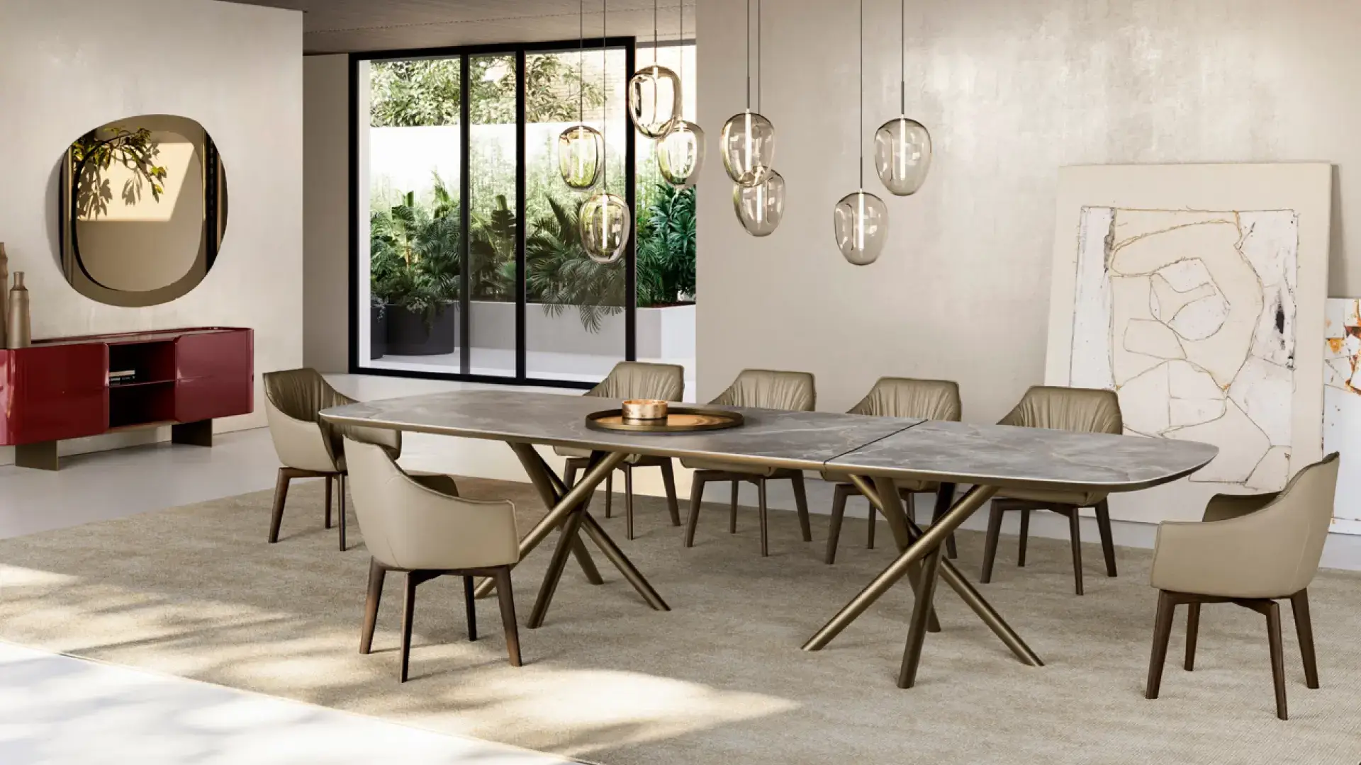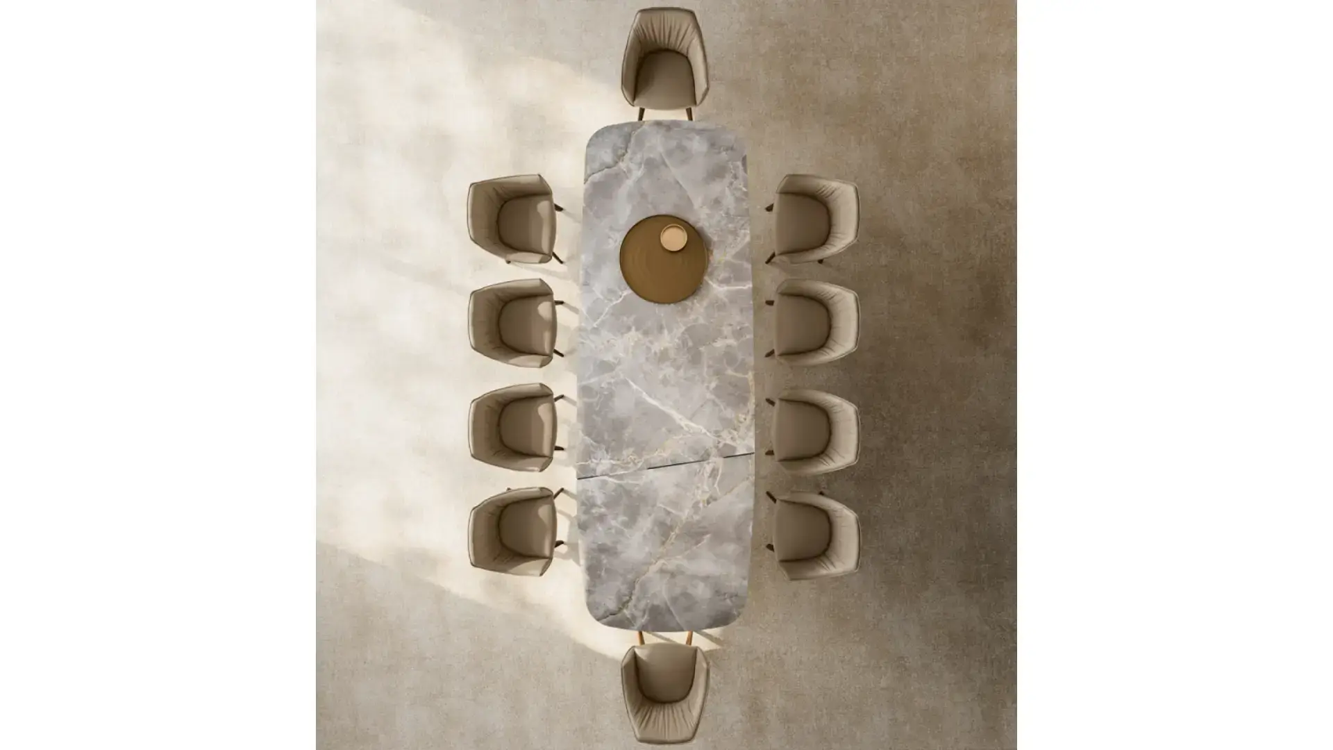 Stůl Baly XL od eformy je elegantní jídelní stůl, který spojuje geometrickou čistotu tvarů s nejvyšší kvalitou materiálů. Jeho design, z dílny Ollen Pala, se vyznačuje propletenými kuželovitými nohami z lakovaného kovu – ikonickým prvkem, jenž dodává konstrukci vizuální lehkost a stabilitu. Ve verzi XL stůl získává velkorysé rozměry, ideální pro prostorné a reprezentativní interiéry. Tvarovaná keramická deska je složena ze dvou keramických ploch spojených černým chromovaným profilem, doplněných o 30mm lakované dílčí desky sladěné s podnoží. Keramické vrstvy o síle 6 mm podtrhují technologickou preciznost a estetickou čistotu designu. Keramika představuje nejen estetickou, ale i technicky vyspělou volbu – je odolná vůči poškrábání, teplu i chemikáliím a zároveň se snadno čistí. Nabízené povrchové úpravy inspirované přírodními texturami, jako je mramor či kámen, dodávají stolu výjimečnou eleganci a nadčasový charakter. Pro milovníky přírodních materiálů je stůl Baly XL dostupný také v dřevěném provedení.