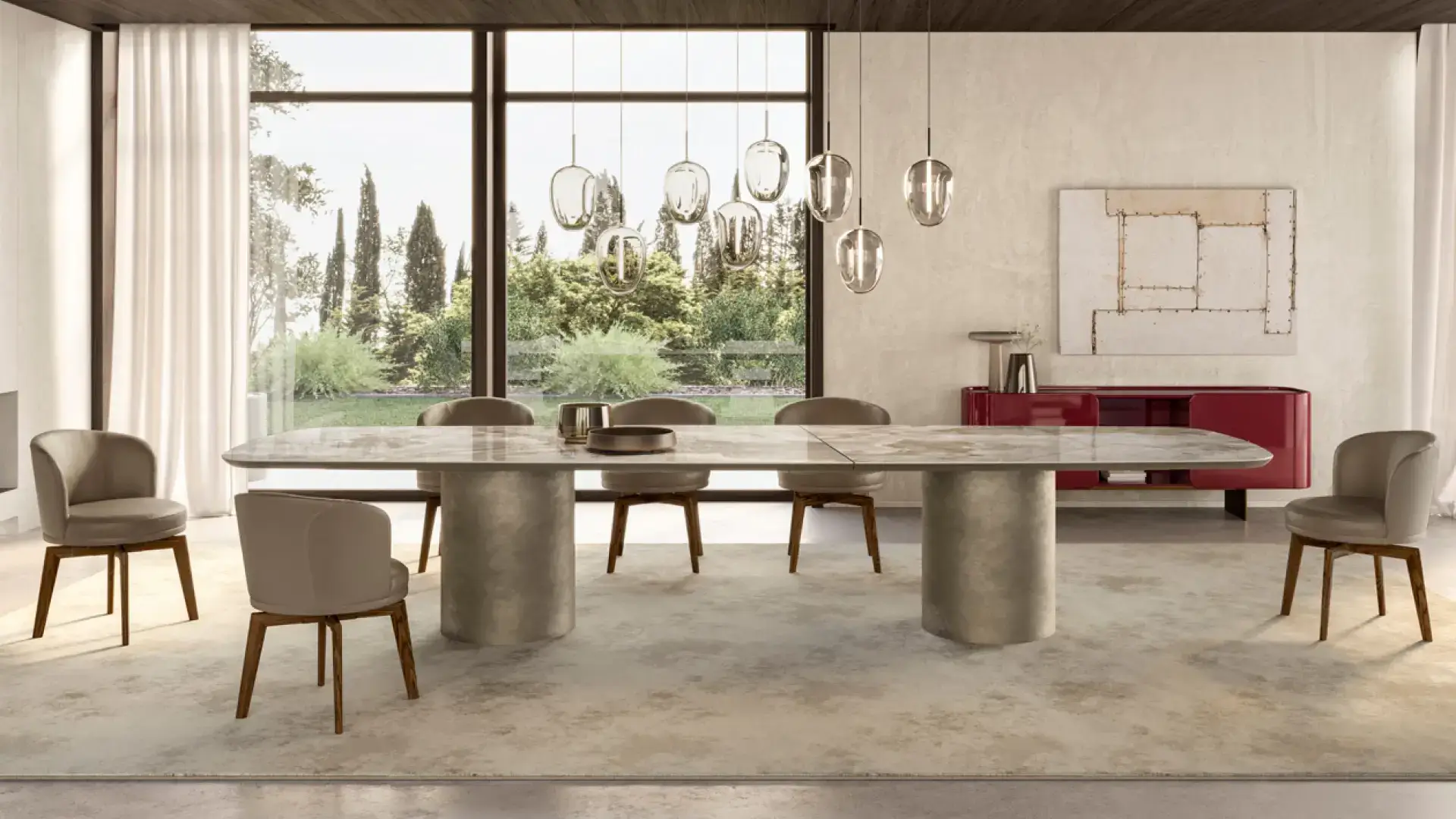 Stůl Cilindro XL od Efromy je designový stůl v elegantním, minimalistickém stylu, ideální pro zařízení interiérů s osobitým charakterem. Autorem návrhu je Ollen Pal, který stůl koncipoval pro velkorysé prostory, kde se design stává ústředním prvkem interiérové architektury. Čistá a strohá forma je dokonale vyvážena harmonickými proporcemi, zvýrazněnými prvotřídními materiály a pevnou konstrukcí. Tvarovaná keramická deska se skládá ze dvou keramických ploch spojených černou chromovanou spojkou. Dvě 30mm lakované dílčí desky v povrchové úpravě sladěné s podnoží jsou spárovány s 6mm silnou keramickou vrstvou. Toto technické řešení zajišťuje vysokou odolnost proti poškrábání, teplu i každodennímu opotřebení, přičemž si zachovává vytříbený vzhled a příjemnou haptiku. Pro milovníky přírodních materiálů je stůl Cilindro XL k dispozici také v dřevěném provedení, které interiéru dodá teplo a přirozený charakter.