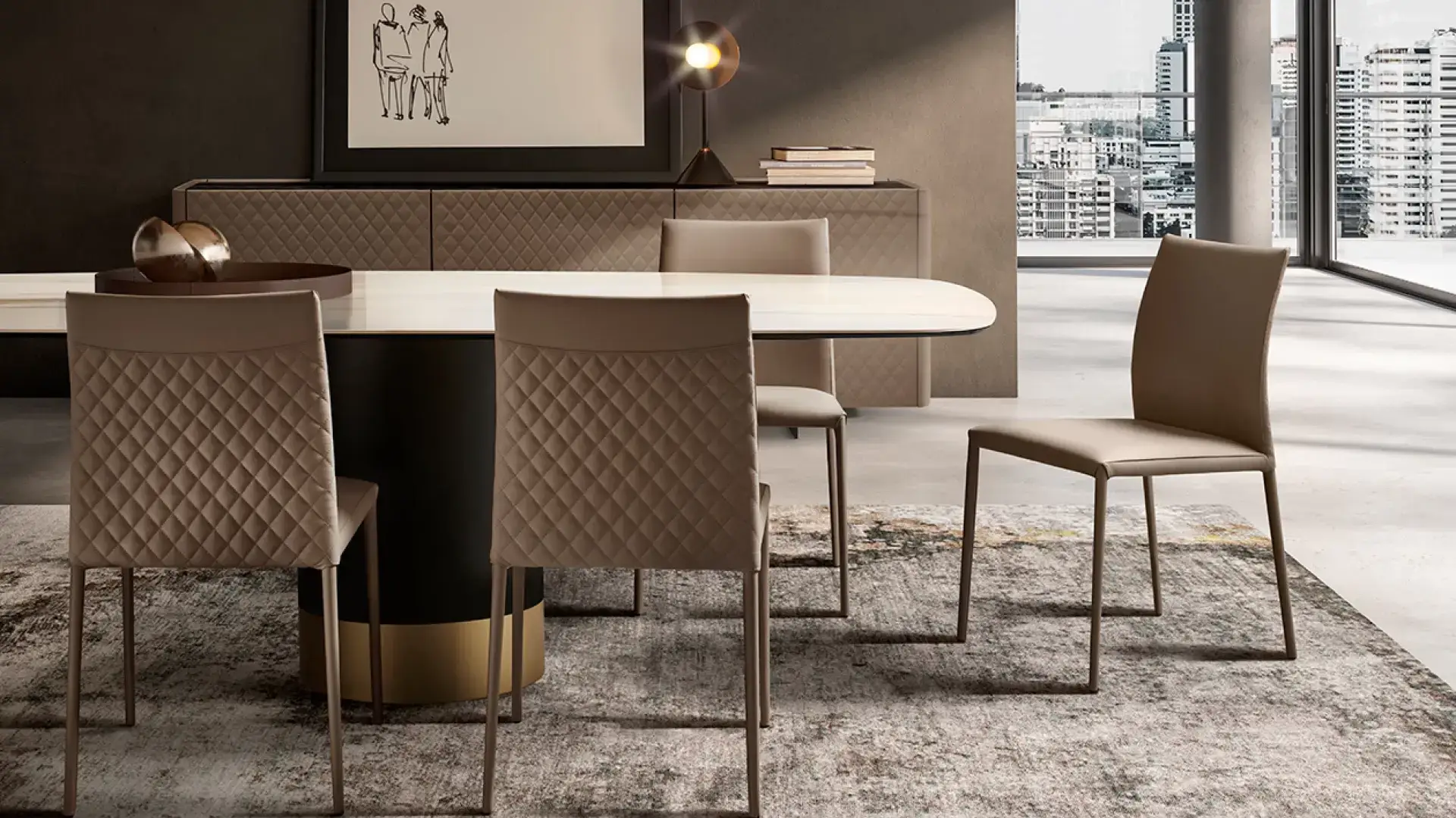 Verze Bea DIAMOND přináší rafinovanost díky prošívanému opěradlu a jemným detailům, které podtrhují její nadčasový charakter. K dispozici je v provedení kůže, ekokůže nebo látky.