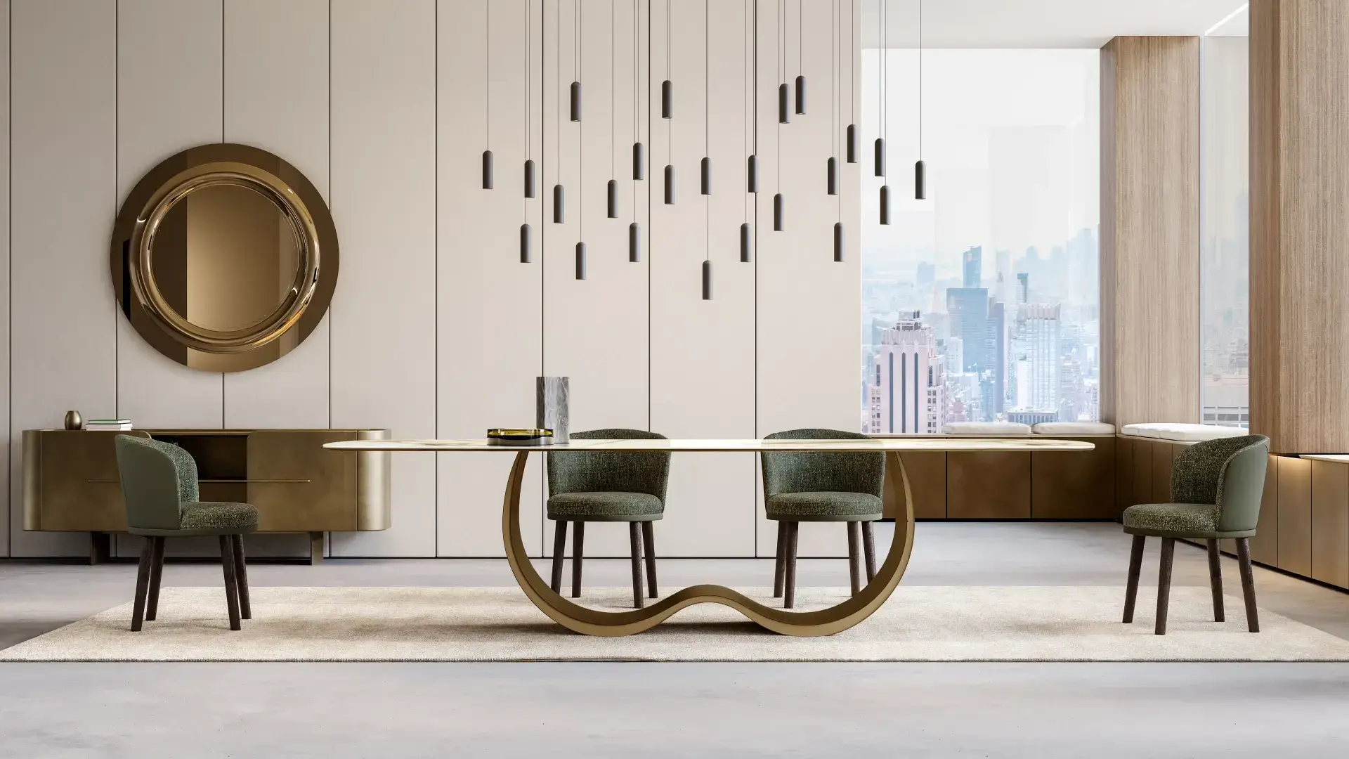 Výrazná čalouněná židle s klasickými a elegantními tvary.