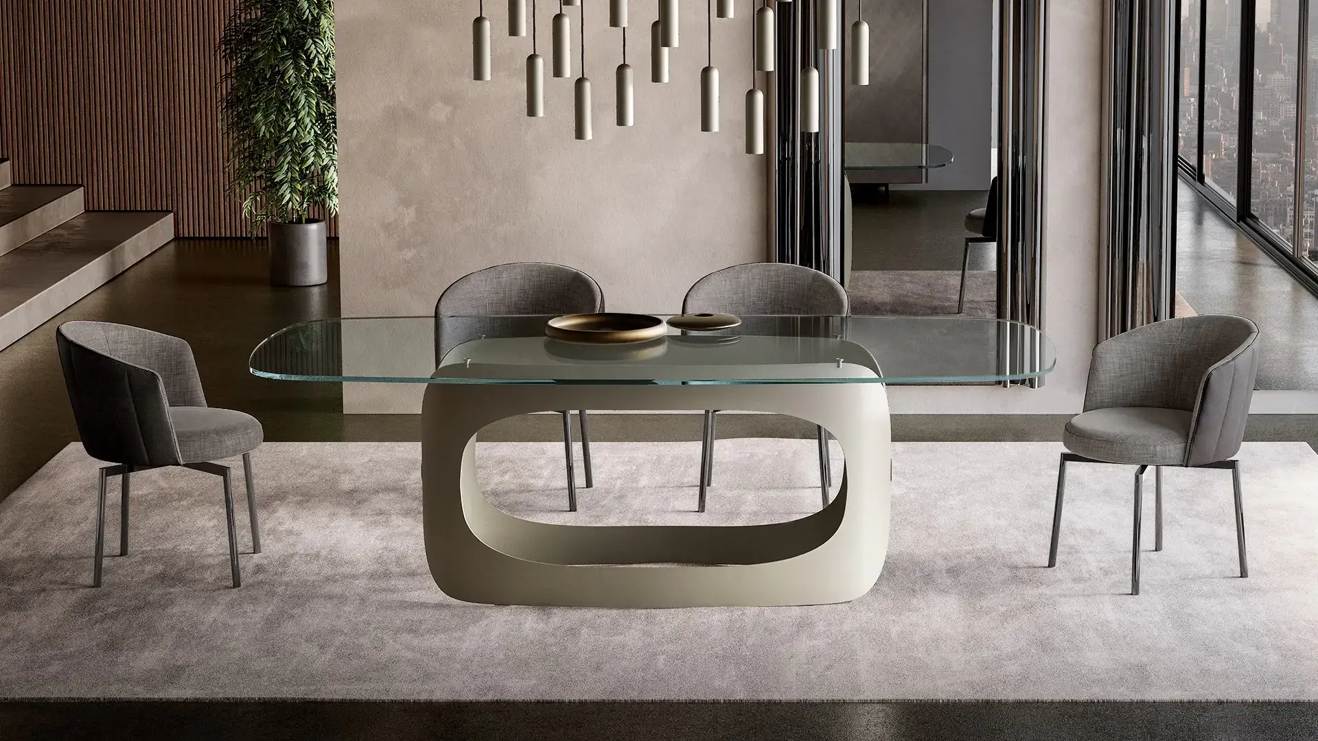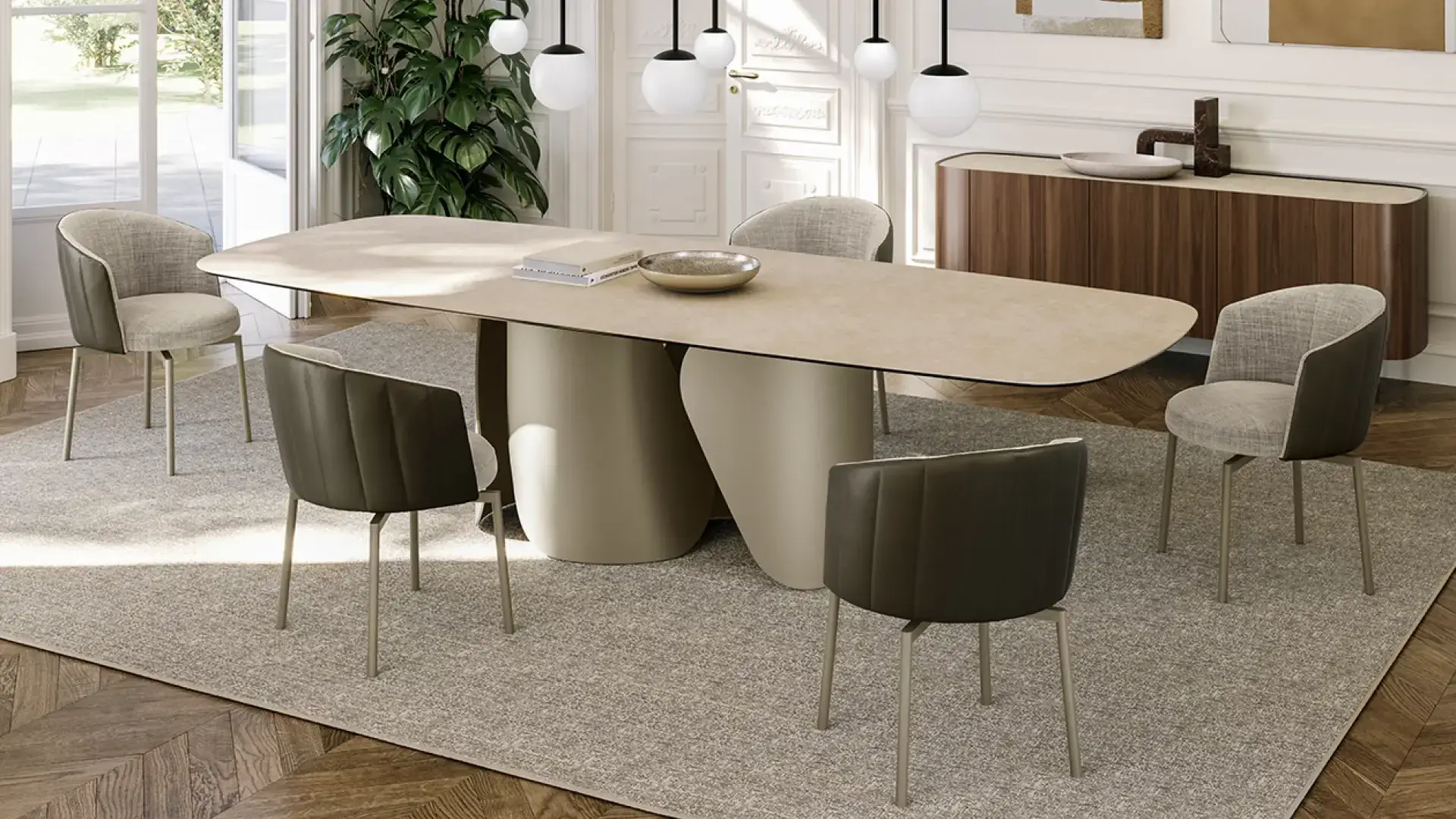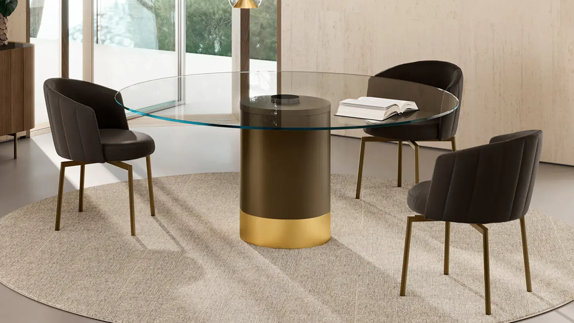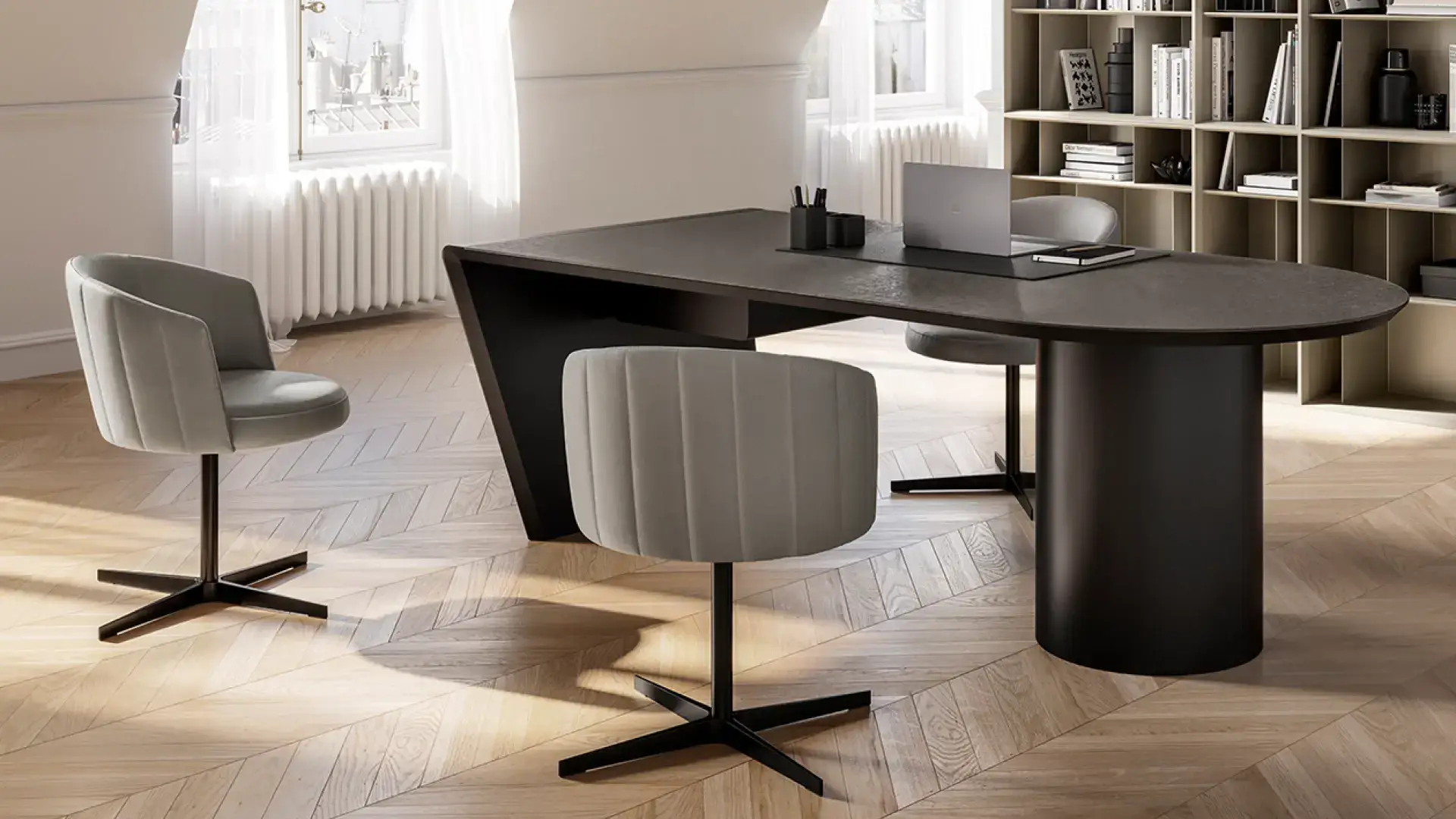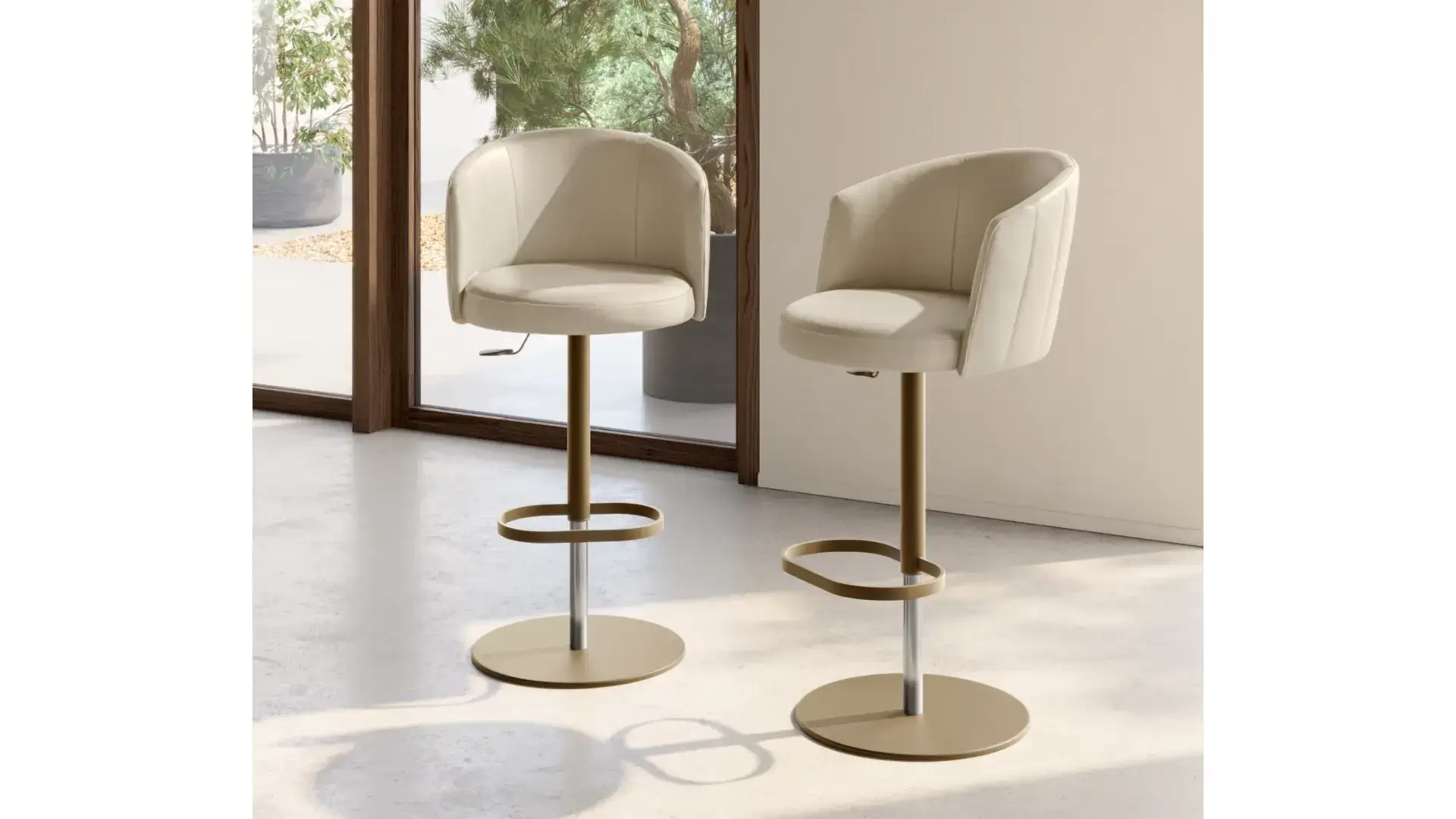 Vkusné a elegantní křeslo s pevnou nebo otočnou podnoží, které může mít lakované kovové nohy nebo centrální otočnou dřevěnou podnož. Robustní, obepínající opěradlo zdůrazňuje pečlivou pozornost k detailům, vysokou kvalitu krejčovského zpracování a řemeslnou preciznost. K dispozici je také barová židle s otočnou centrální podnoží a výškově nastavitelným sedákem nebo barová židle s pevnými kovovými nohami. Kolekci doplňuje lounge křeslo s centrální otočnou hliníkovou podnoží.