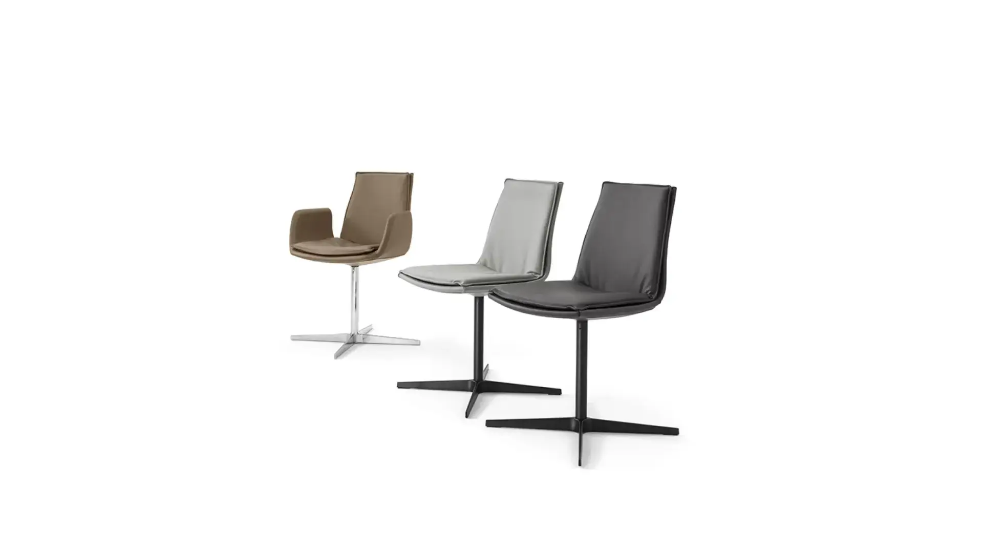 Díky různým typům podnoží jsou všestranné a snadno se přizpůsobí každému interiéru: štíhlé kovové nohy pro lehký a vzdušný vzhled, konzolová podnož pro nadčasový moderní styl nebo dřevěné nohy pro elegantní a vytříbený dojem. K dispozici v kůži, eko kůži nebo látce.