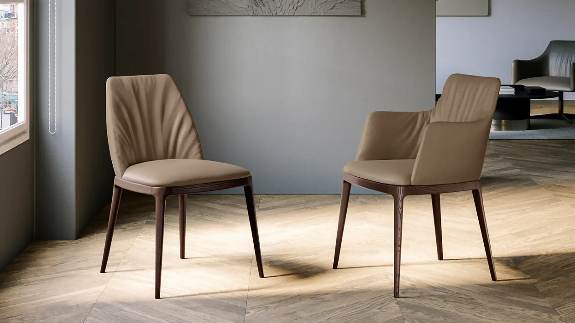 Kolekce židlí a křesel MAX se vyznačuje elegantními, obklopujícími liniemi a moderním designem inspirovaným klasickými tvary. Nyní je obohacena o model MAX L – širší a hlubší variantu, která ještě více zdůrazňuje komfort i reprezentativnost. Na výběr je elegantní dřevěná nebo lakovaná kovová podnož, která podtrhuje estetickou variabilitu kolekce. Tři čalouněné verze nabízejí odlišné charakteristiky: MAX je střídmý, čistý a nadčasový, MAX DIAMOND se vyznačuje dekorativním prošíváním opěradla a působí rafinovaně a luxusně, zatímco MAX DELUXE zaujme měkkým sedákem a výraznými záhyby, které podtrhují řemeslné zpracování čalounění. Všechny modely jsou dostupné v pravé kůži, ekokůži nebo kvalitní látce a snadno se přizpůsobí různým typům interiérů.